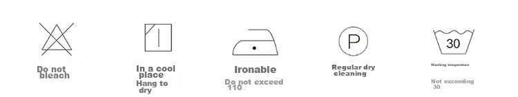 **Washing Instructions:** Machine wash in cold water, do not bleach, hang dry, iron at low temperature