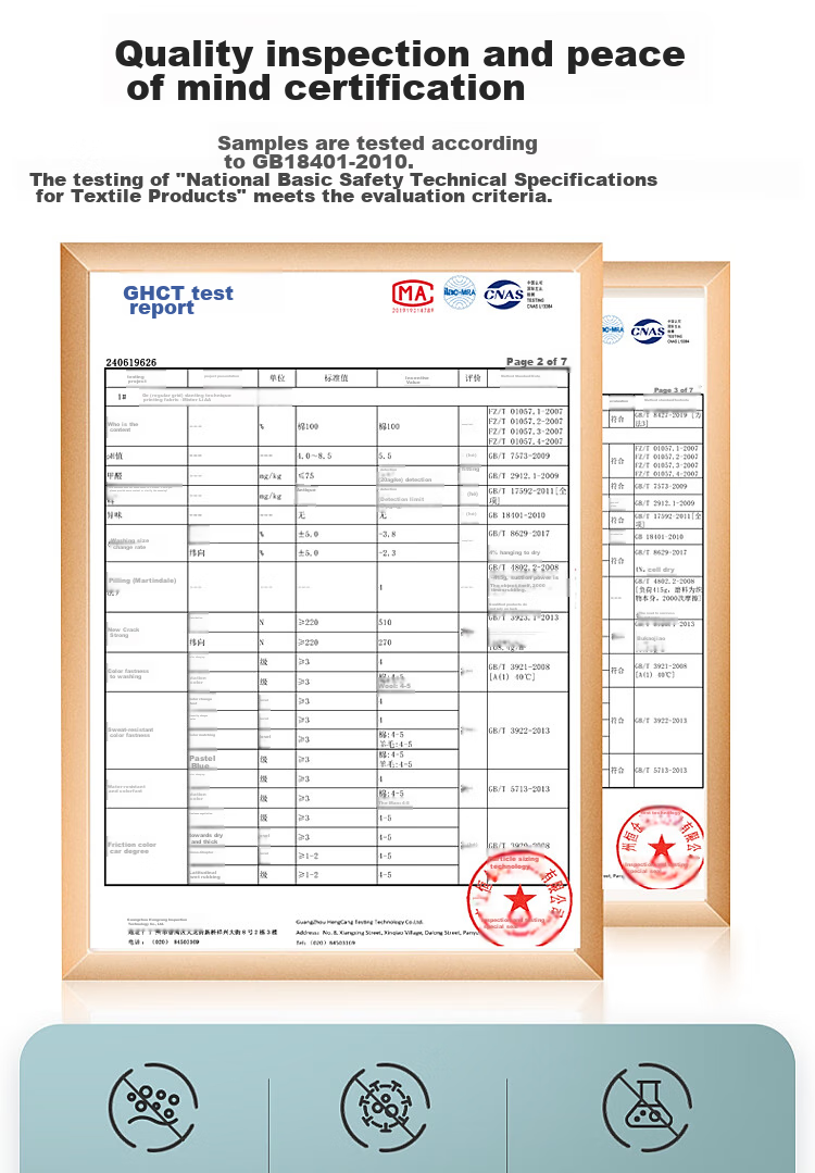 **Certifications:** GB18401-2010, GHCT test report, CNAS 240619626