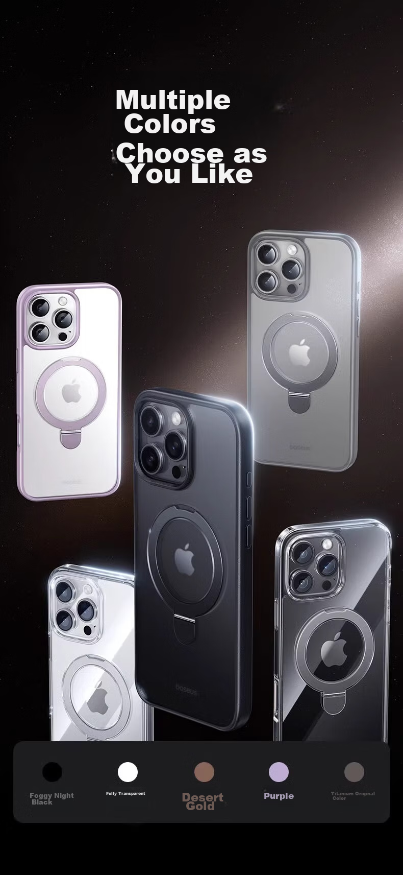 Available in multiple colors including black, transparent, gold, purple, and titanium