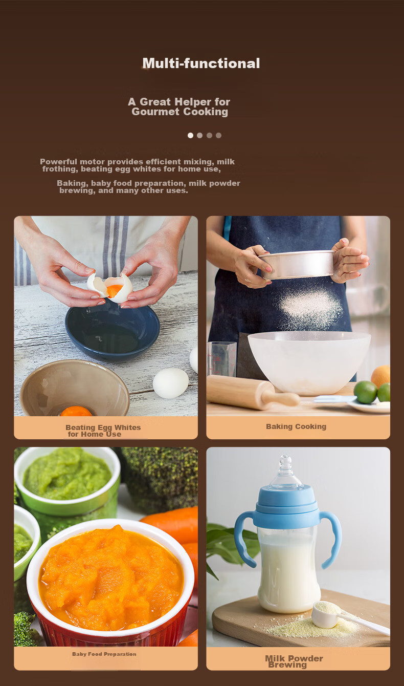 Suitable for various uses such as mixing, milk frothing, egg beating, baking, baby food preparation, and milk powder brewing