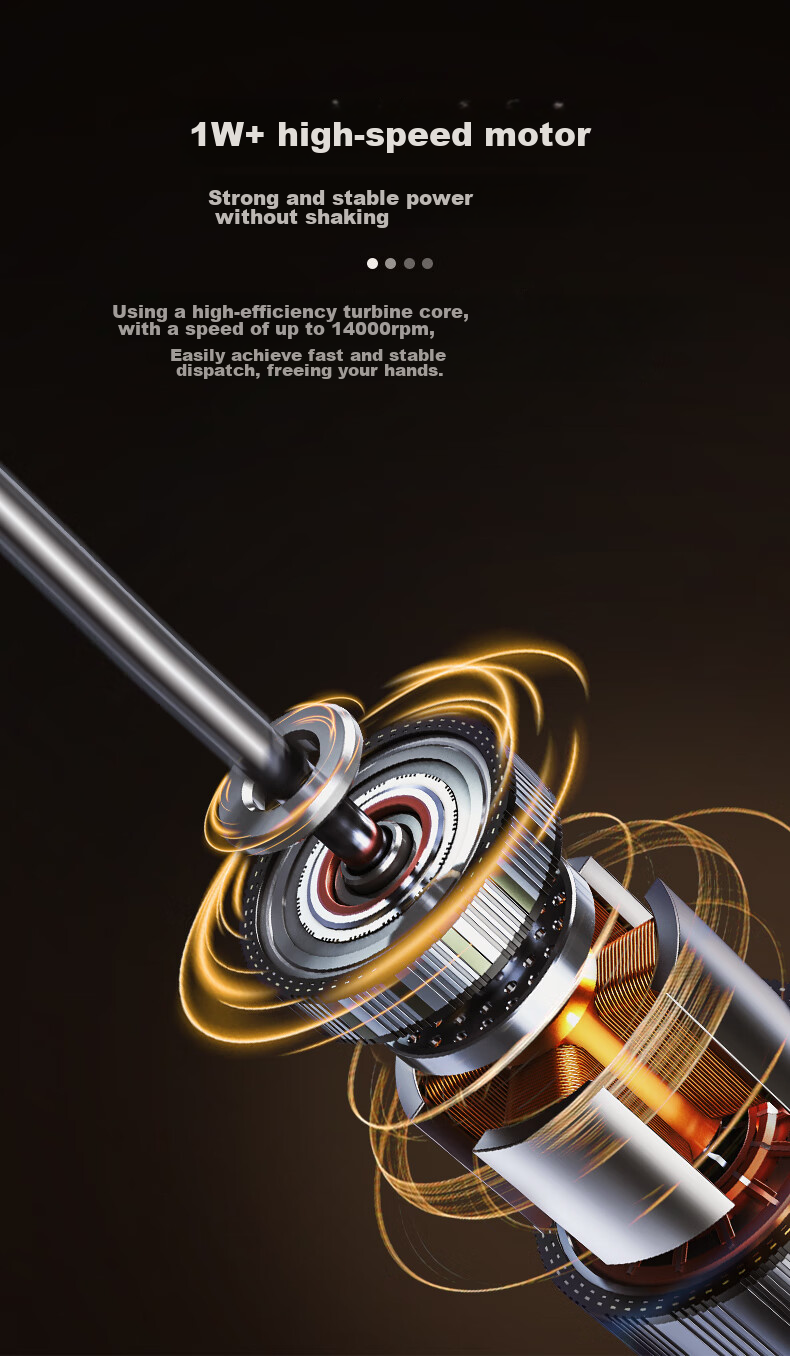 Powerful motor with high efficiency and stability, reaching speeds up to 14000rpm