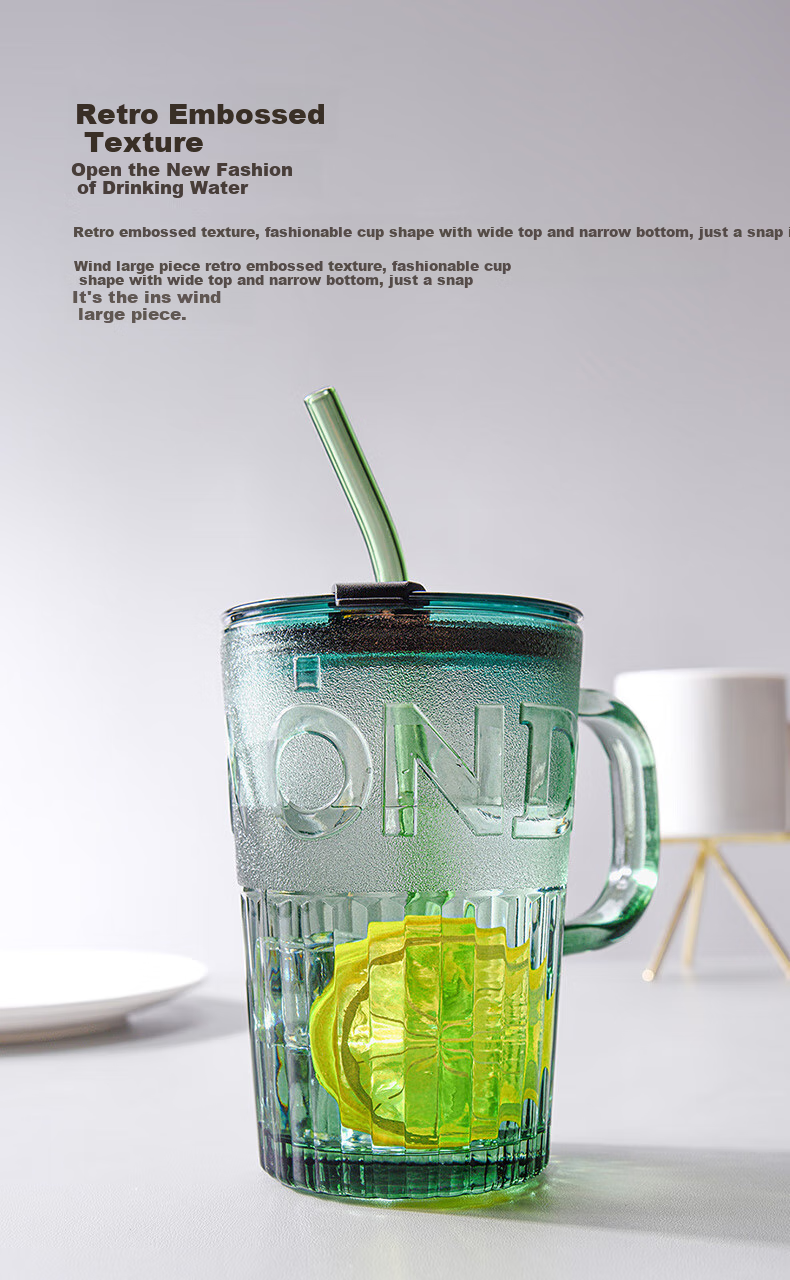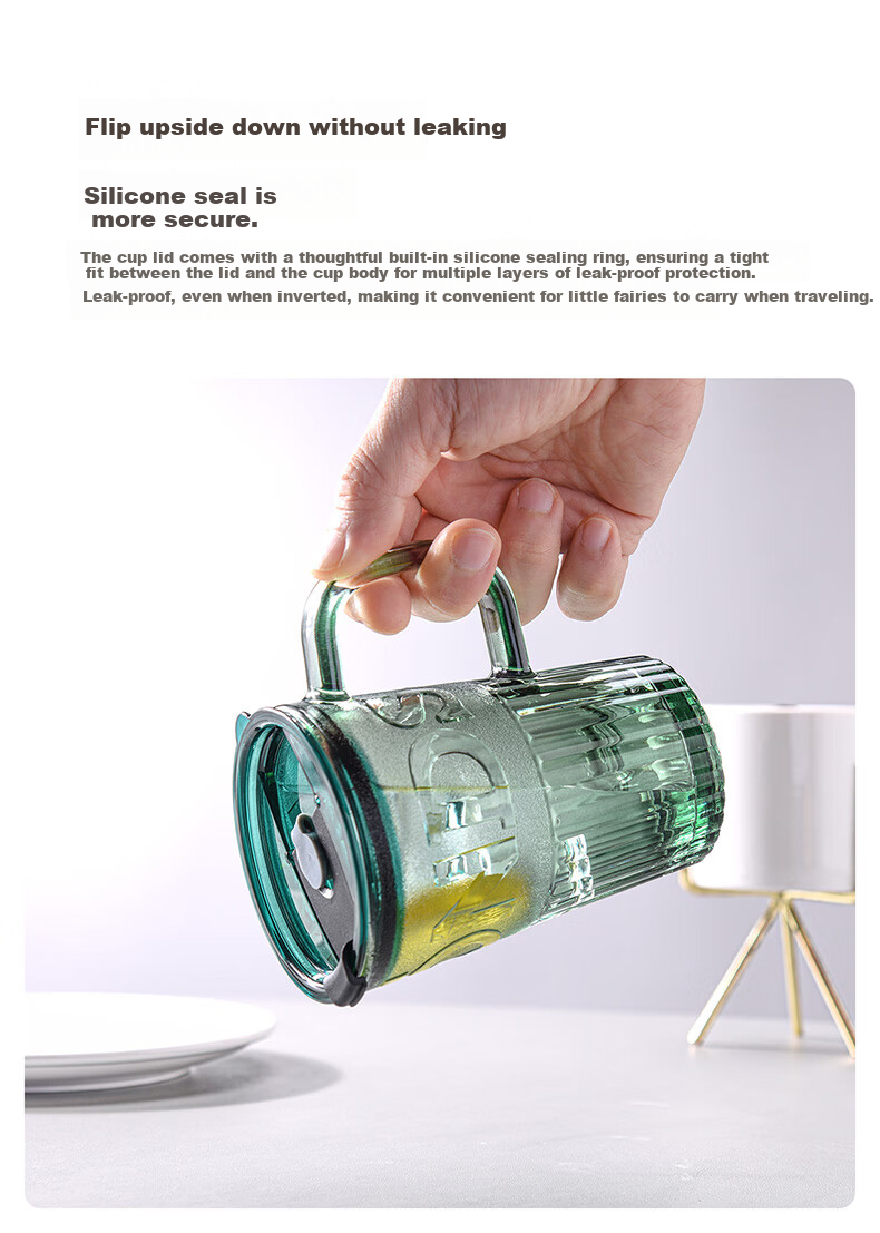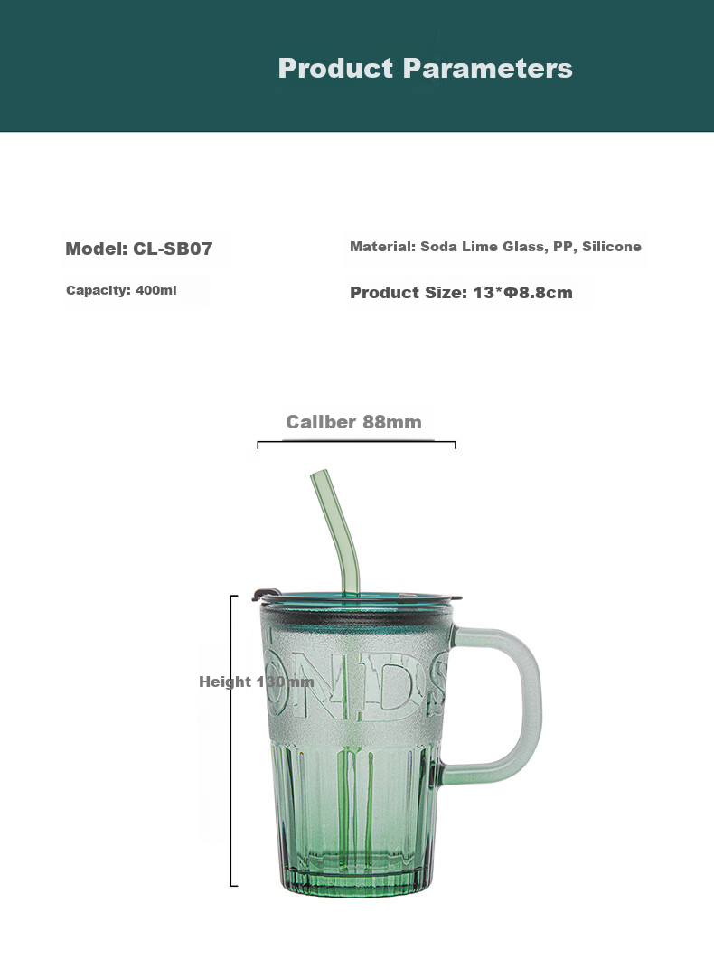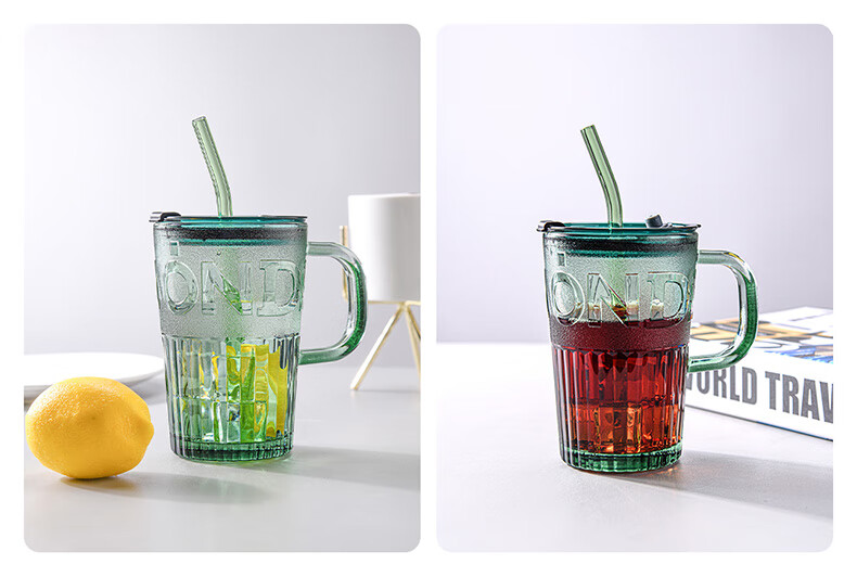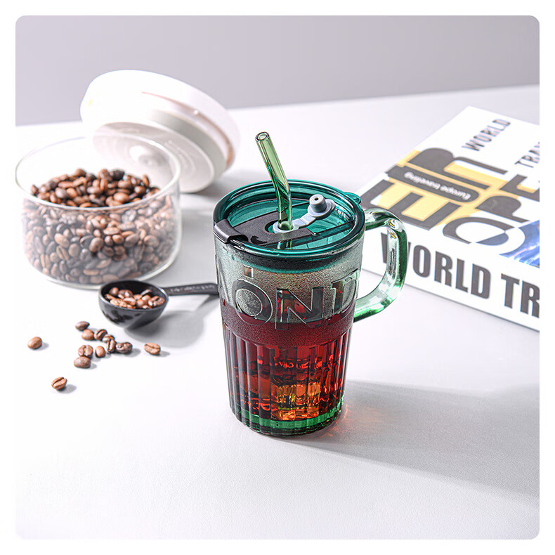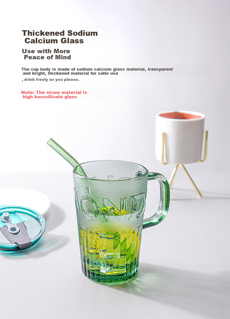 Additional Information: Straw material is high borosilicate glass; silicone seal for leak-proof lid; suitable for travel; versatile drinking options with lid for straw, direct, and open drinking; comfortable round handle design; suitable for office and home use.