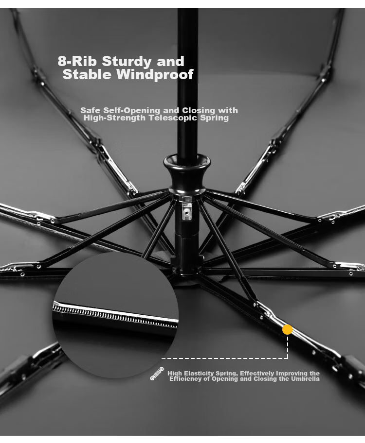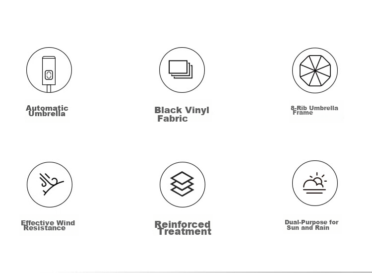- Black vinyl fabric with 8-rib umbrella frame for wind resistance