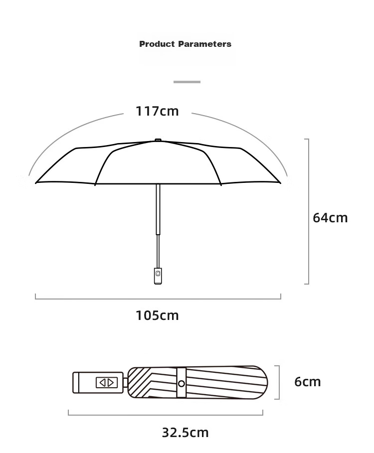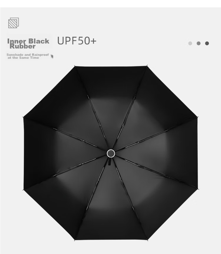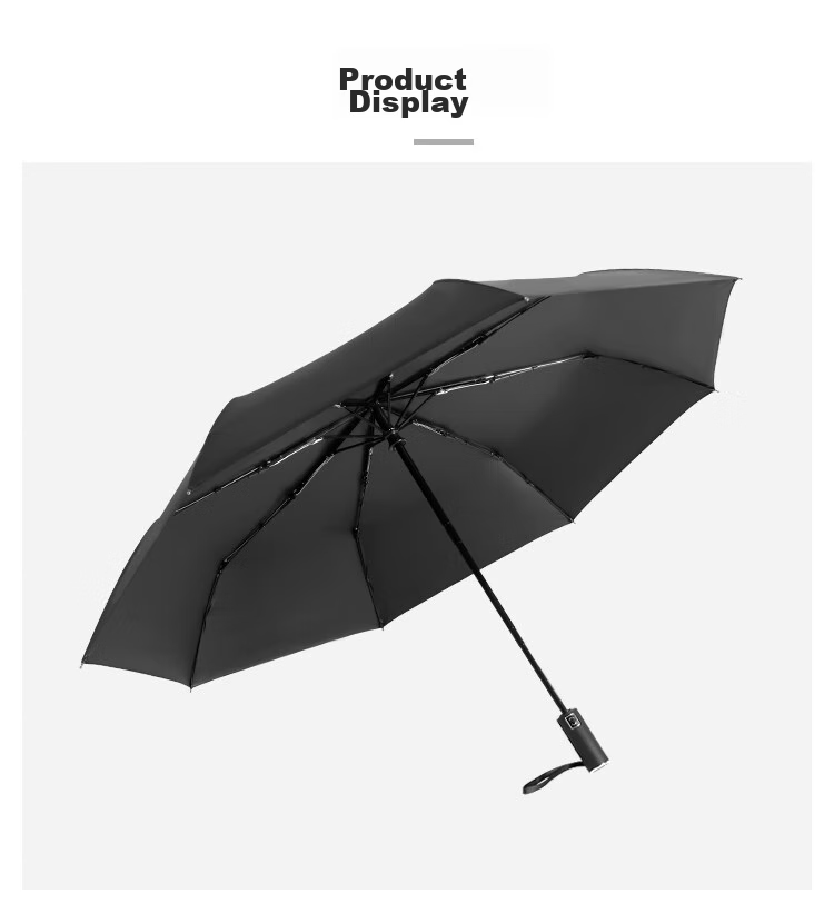 **Product Display:** UPF50+ sun and rain protection, wide umbrella diameter of over 105cm, excellent waterproof fabric, smooth matte handle, stainless steel shaft