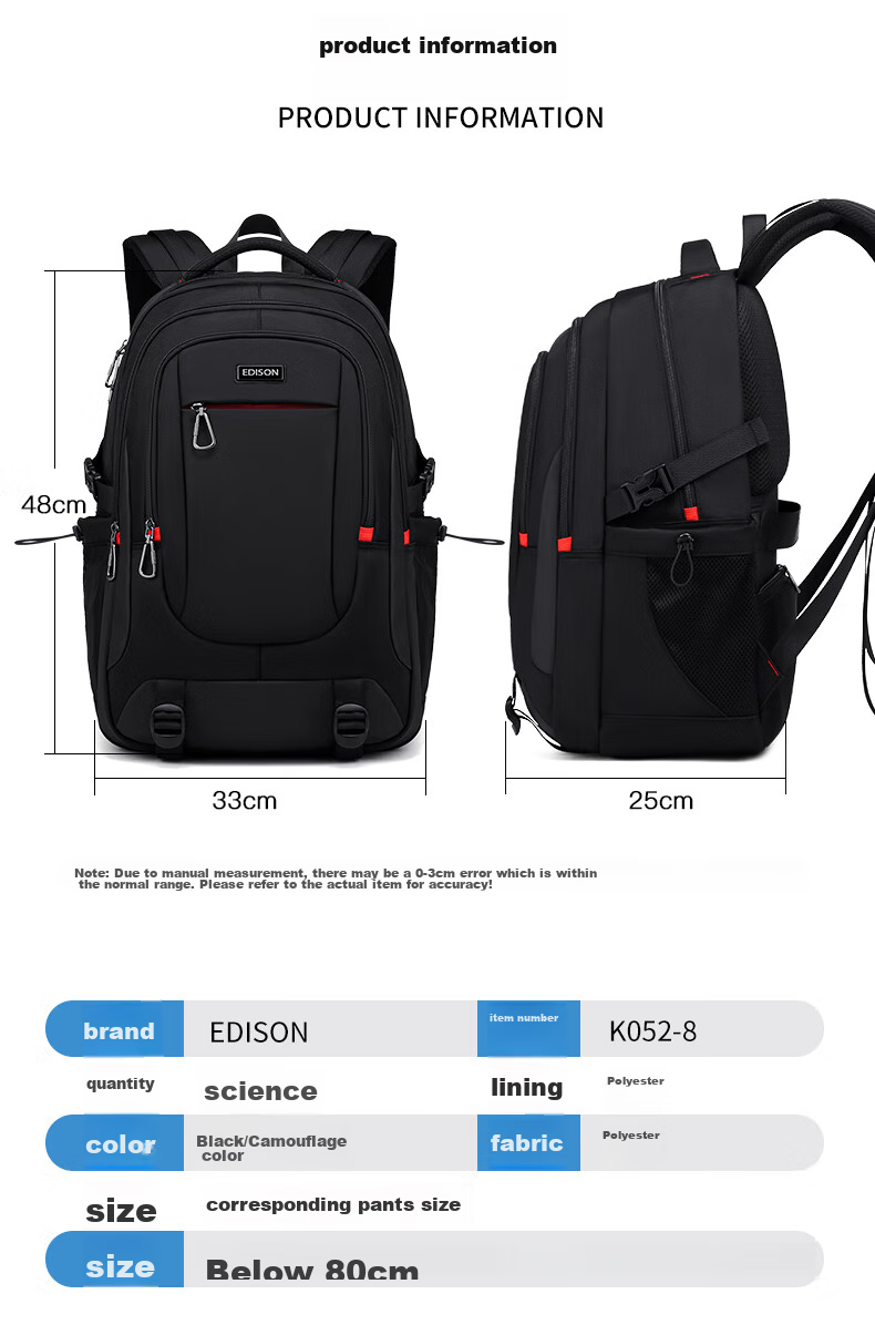 **Additional Features:** Lightweight design, suitable for students, suitable for travel with luggage strap, anti-slip shoulder strap buckles