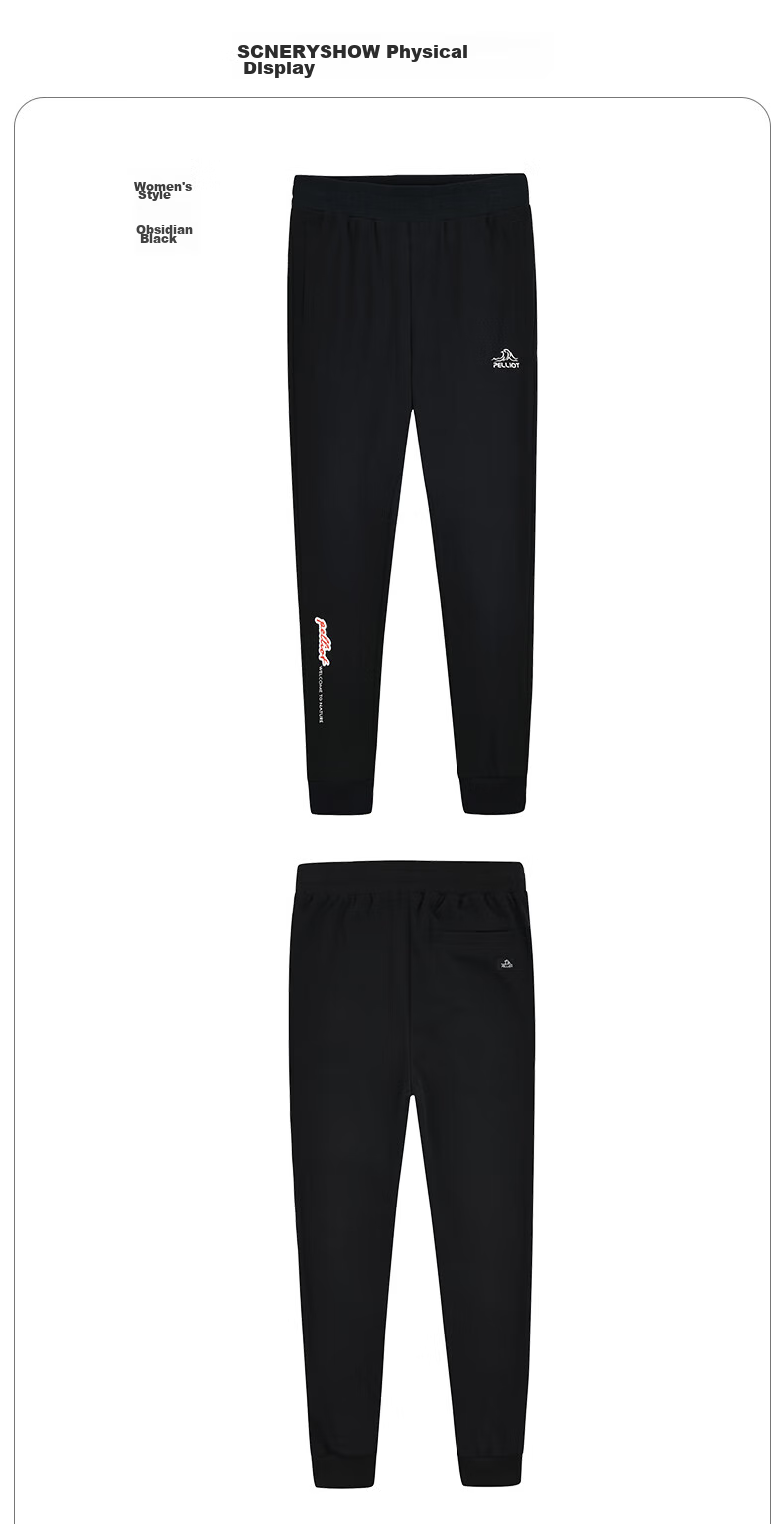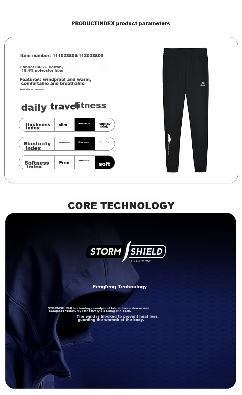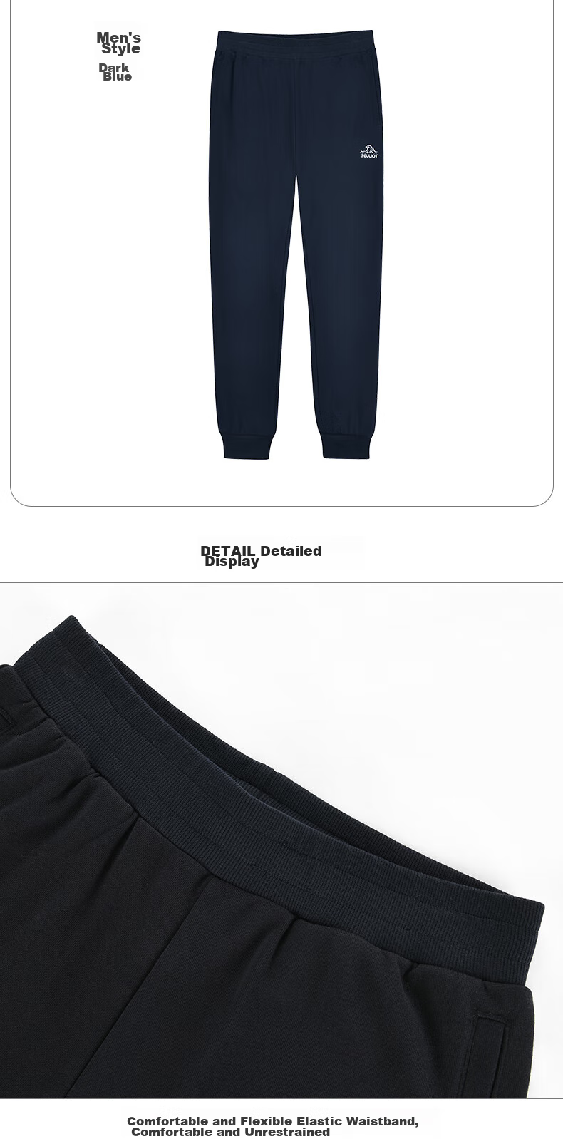 **Detail Show:** Comfortable and flexible elastic waistband, brand logo, cuffed design, windproof and breathable fabric
