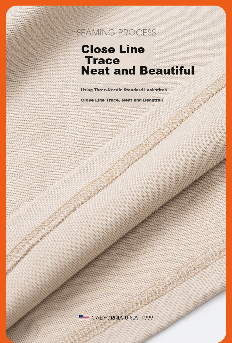 **Seaming Process:** Neat and precise stitching with a three-needle lockstitch
