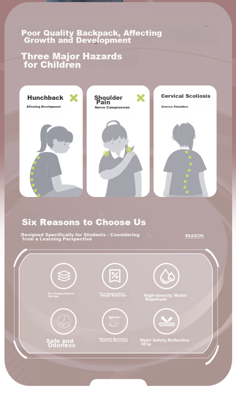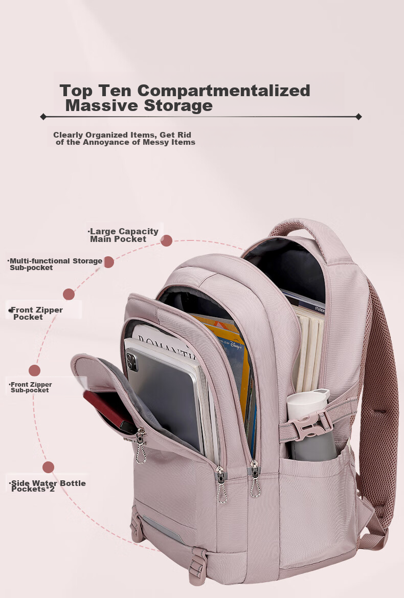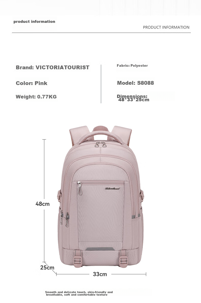 **Cleaning Precautions:** Hand wash with water below 40°C, avoid dry cleaning or machine washing. Hang to dry in a cool place, avoid direct sunlight and ironing. Do not use bleach or alcohol-based cleaning products. Avoid heavy pressure and sharp objects rubbing against the backpack.