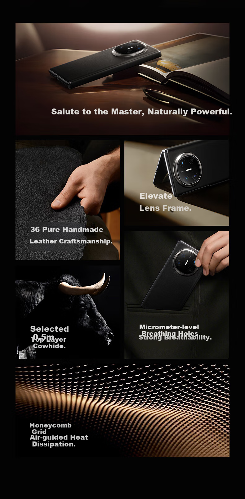 Genuine leather Huawei Mate X6 central axis phone case, paying tribute to the masters with natural strength