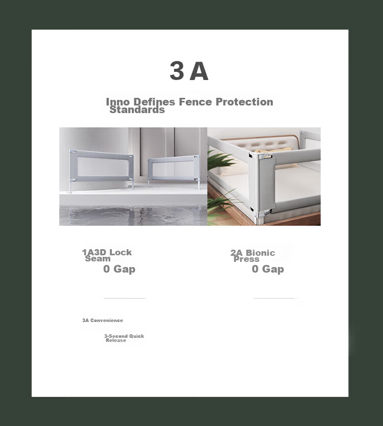 **Safety Standards:** 3A bed rail protection standard defined by InnoTruth, 1A3D lock seam, 2A biomimetic pressure bed, zero gap design