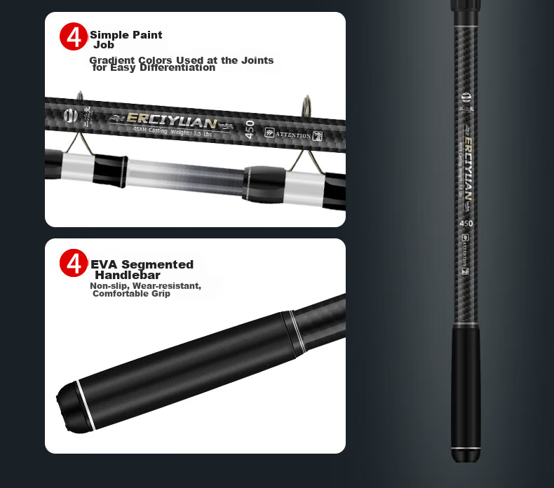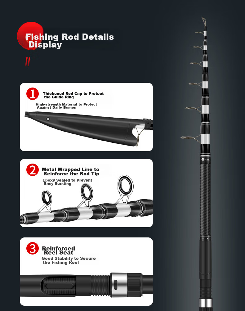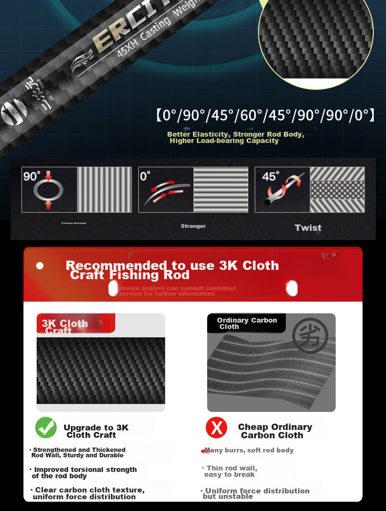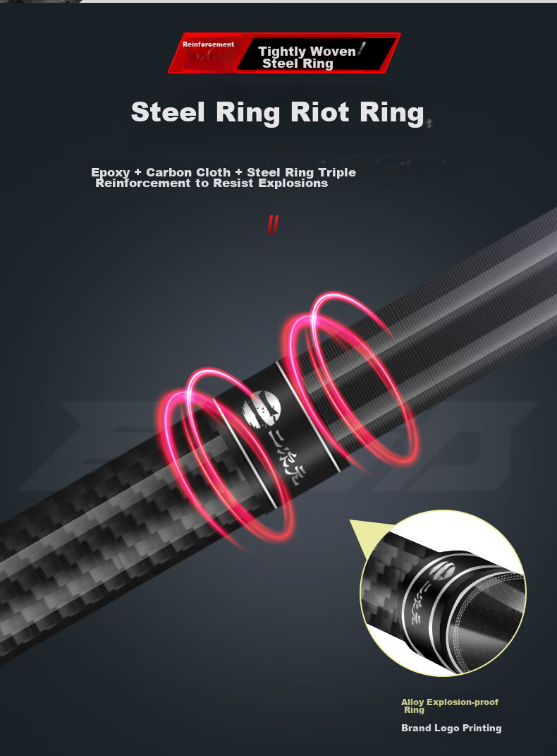 - Features REVERSEWIRE, 3K reinforced carbon cloth, extended handle, lightweight feel, explosion-proof steel ring, large guide ring, and strong waist force
