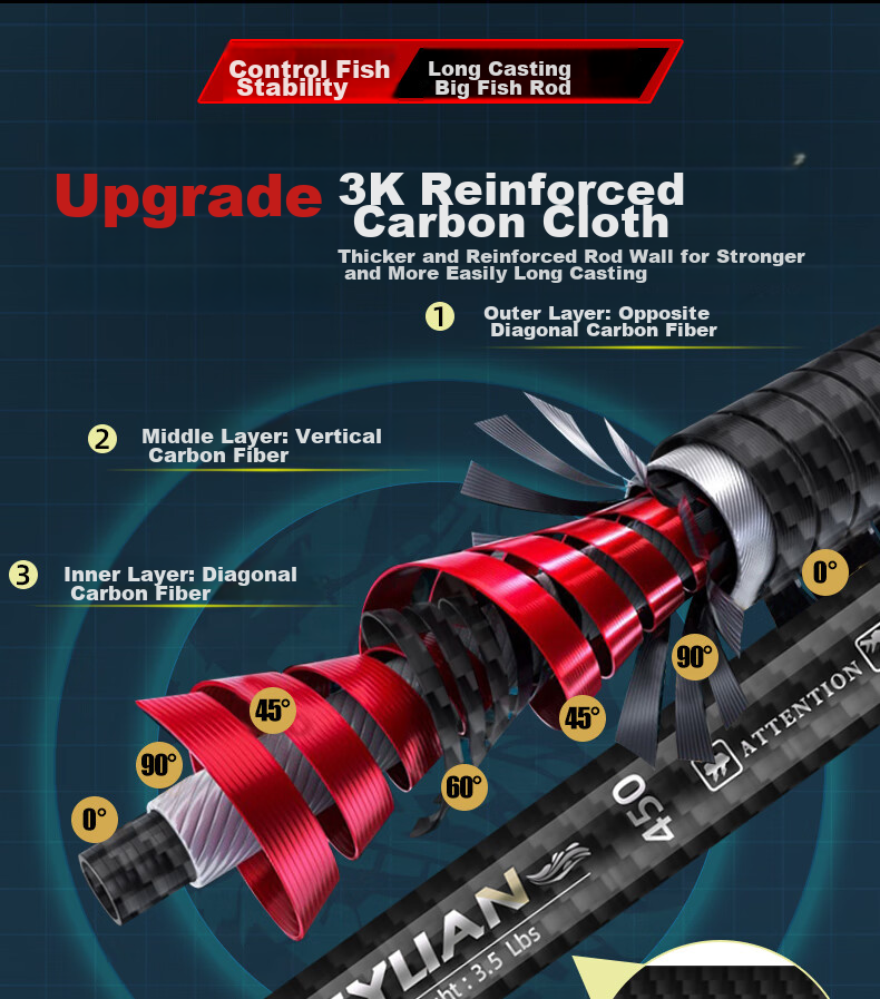 - Stable fish control, upgraded with 3K reinforced carbon cloth for increased wall thickness and durability