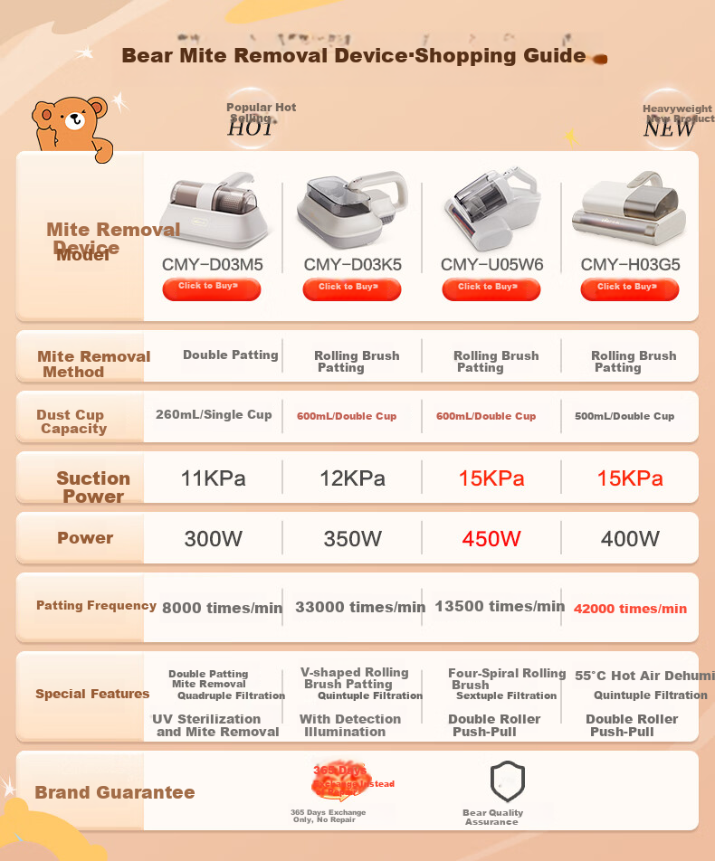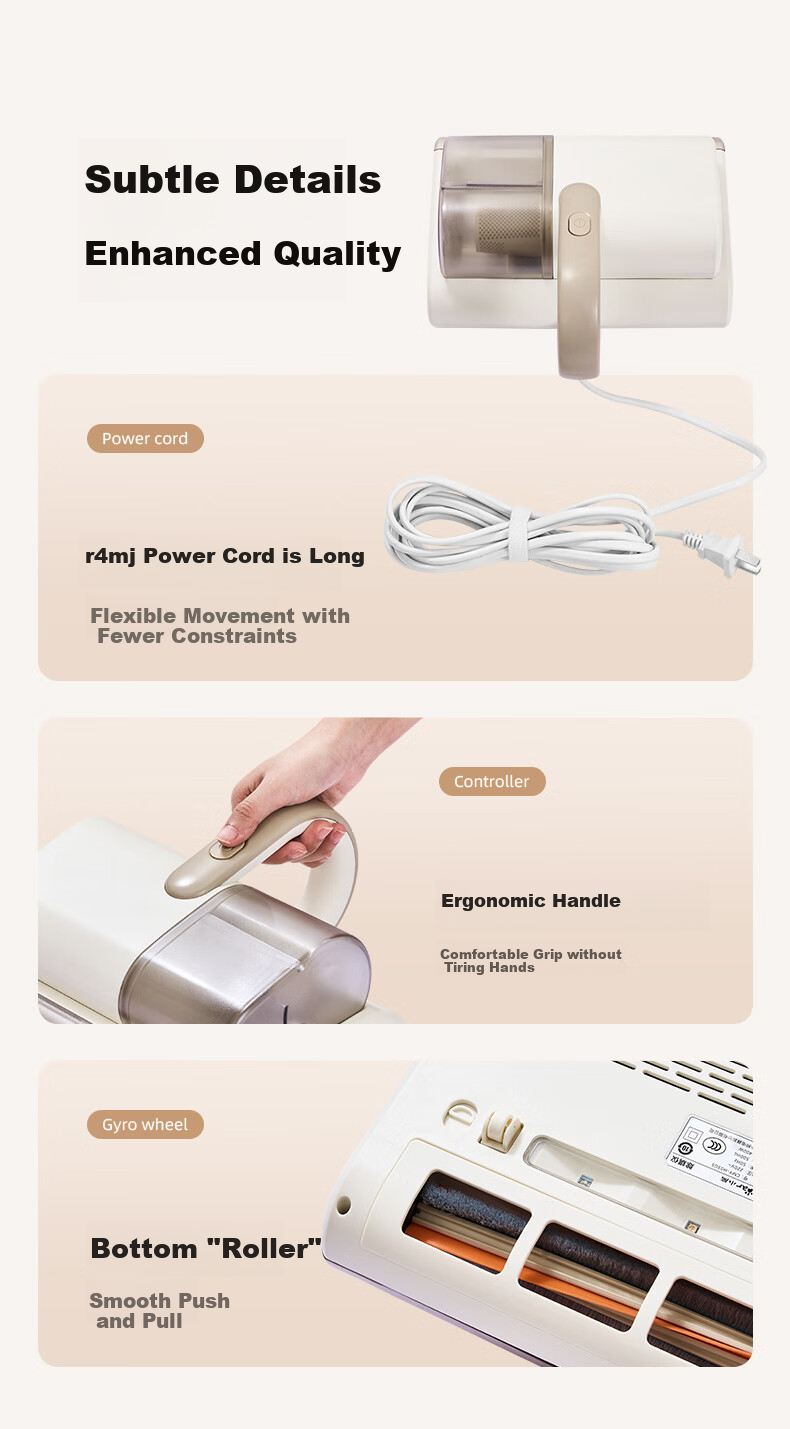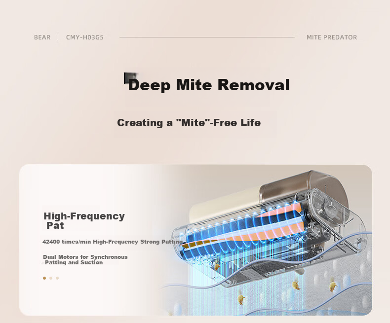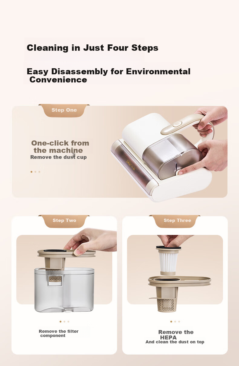 **Additional Features:** Mite control, high-frequency tapping, 42400 times/min tapping frequency, hurricane suction, UV sterilization, 55°C hot air dehumidification