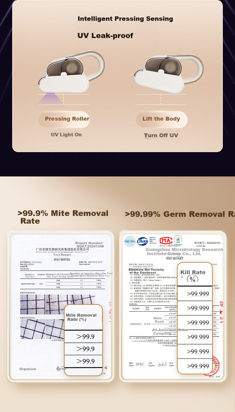 **Mite Removal Rate:** >99.9%, Bacterial Removal Rate: >99.99%