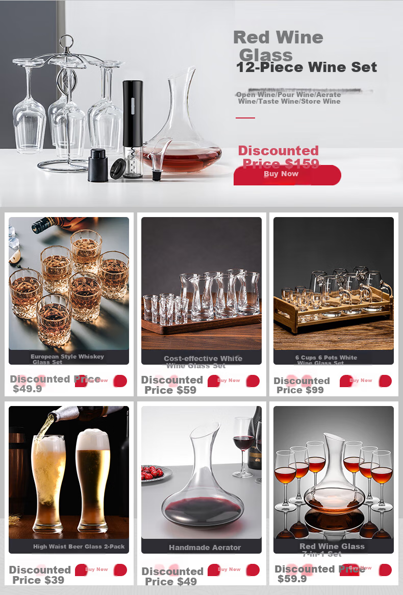 European-style whiskey glass set and cost-effective white wine glass set also available