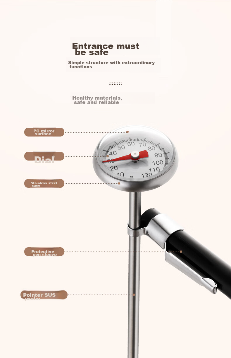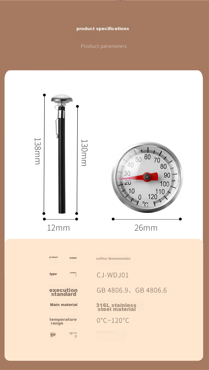 Additional Features: Mechanical temperature sensing, no radiation, versatile SUS304 probe, compatible with CLITON stainless steel hand grinder and frothing pitcher