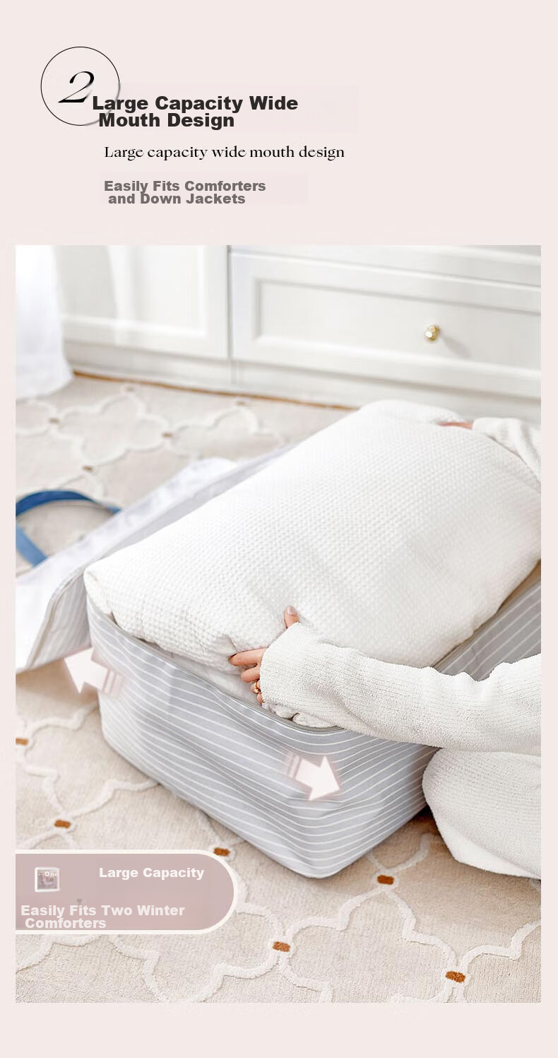 Capacity: Suitable for storing comforters, down jackets, and other bulky items