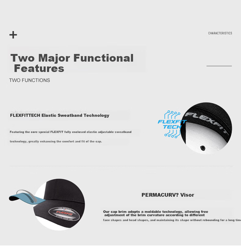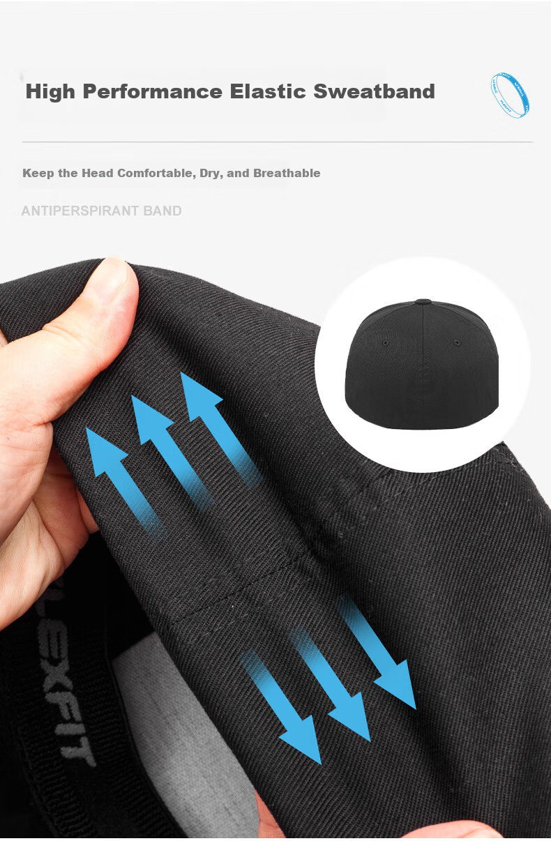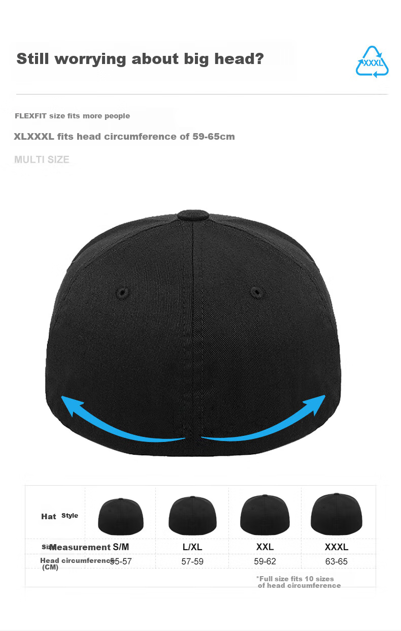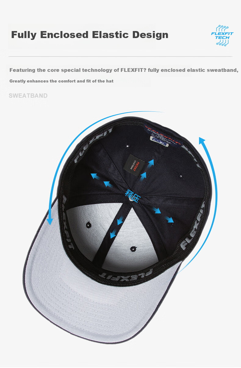 **Special Features:** FLEXFIT TECH elastic sweatband technology, PERMACURV sun visor, AXXXL size option for larger head sizes