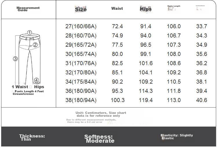 Sizes Available: 27(160/66A), 28(160/70A), 29(165/72A), 30(165/74A), 31(170/76A), 32(170/80A), 34(175/84A), 36(180/90A), 38(180/94A)