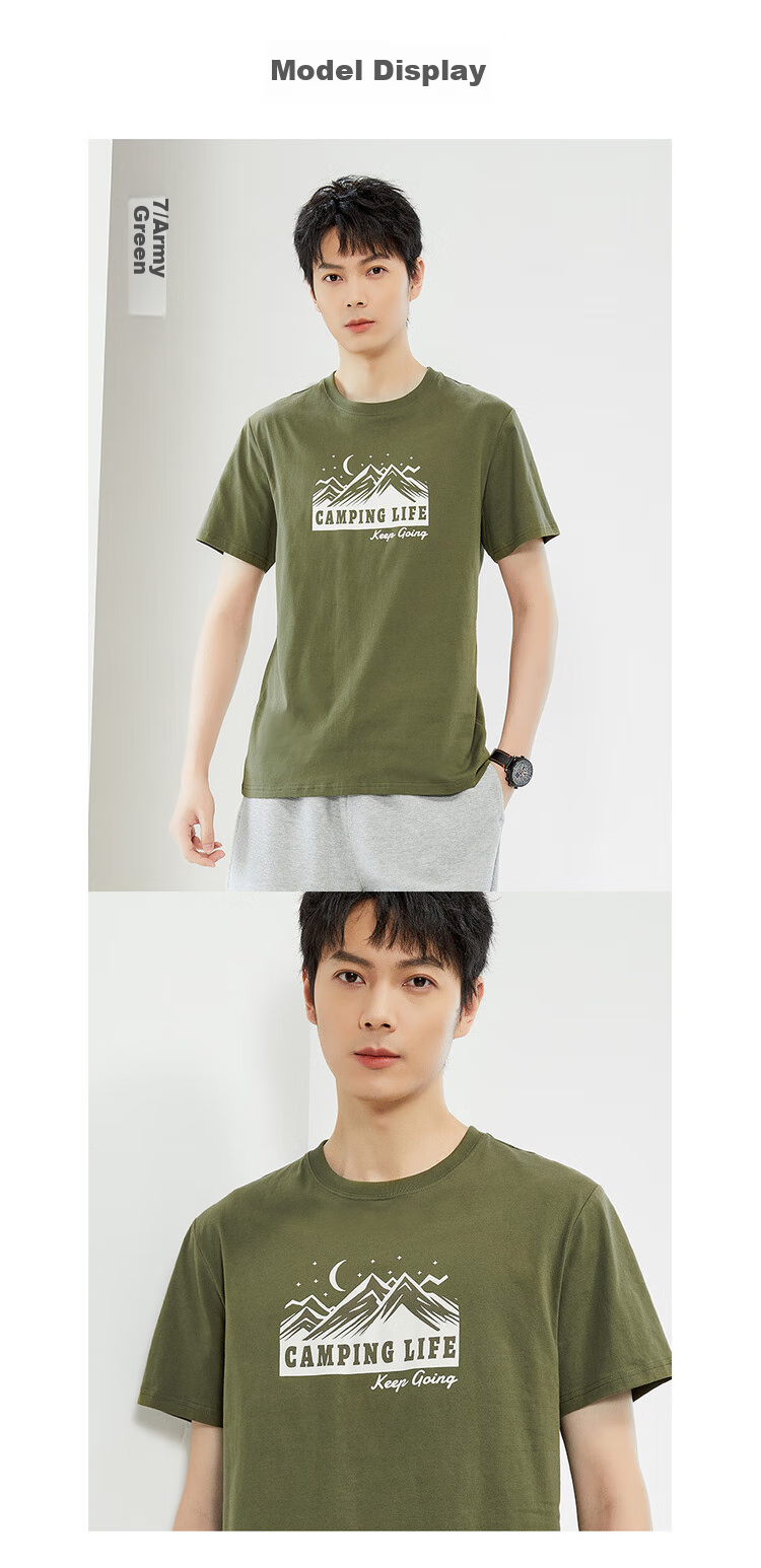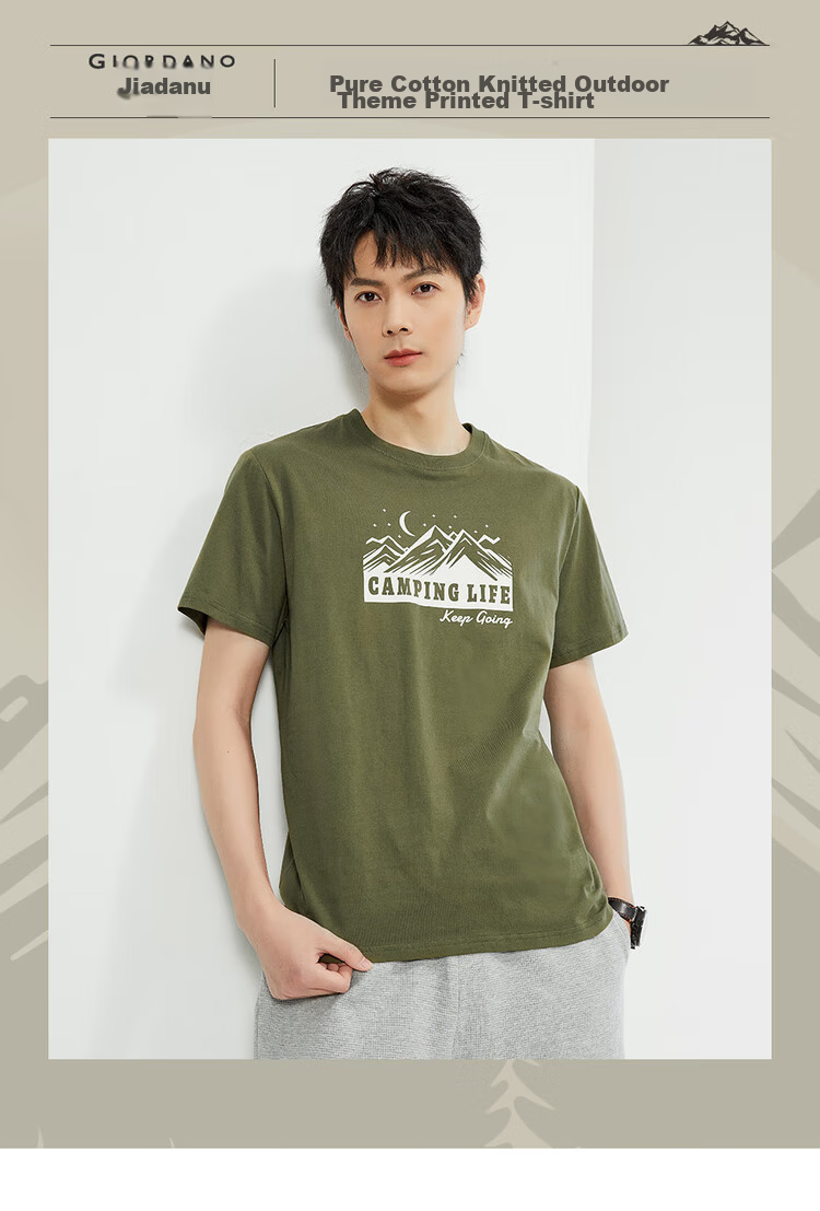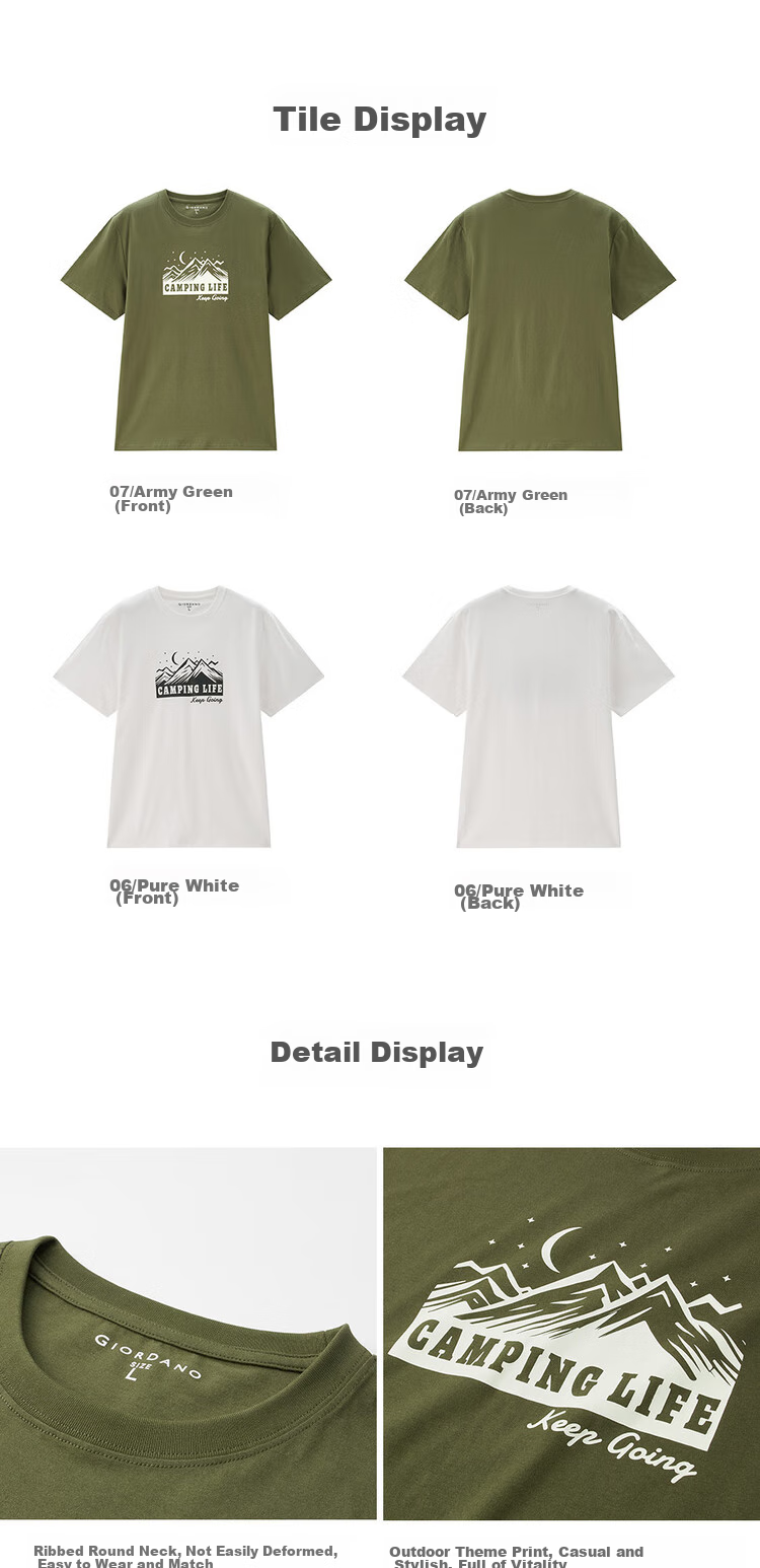 Features: Soft and skin-friendly fabric, ribbed round neck, outdoor theme print, casual and stylish
