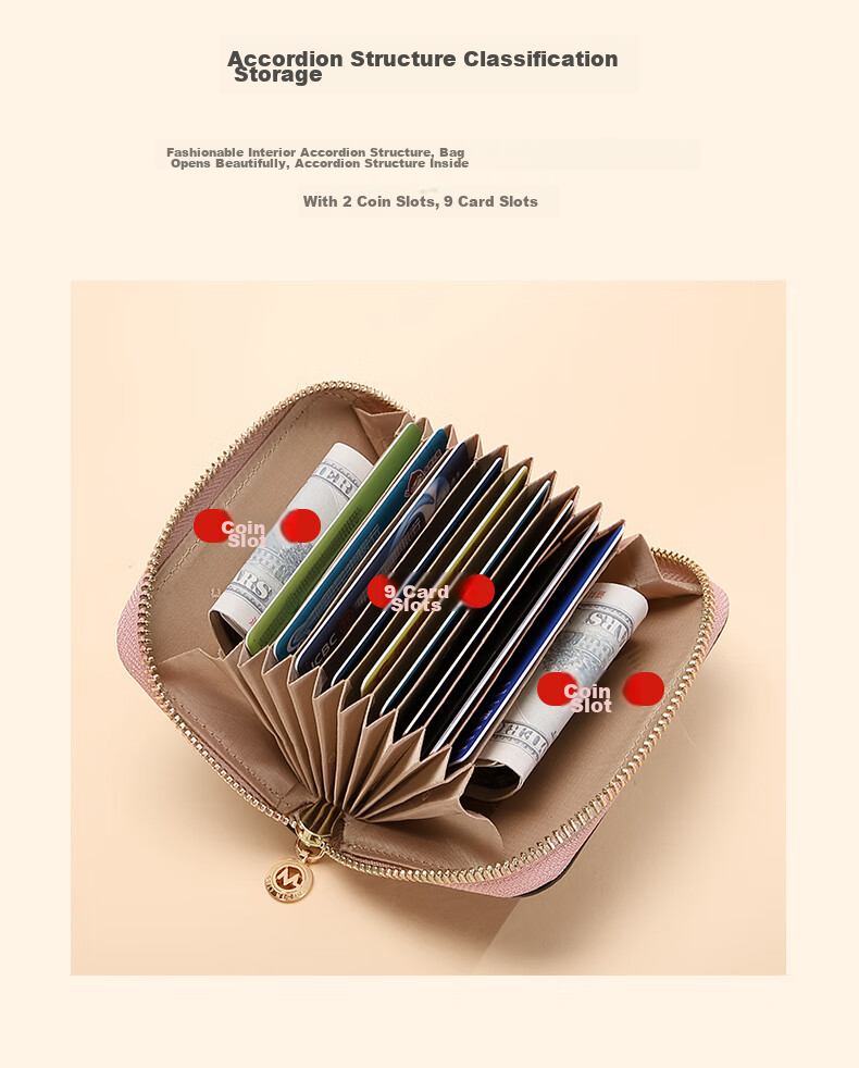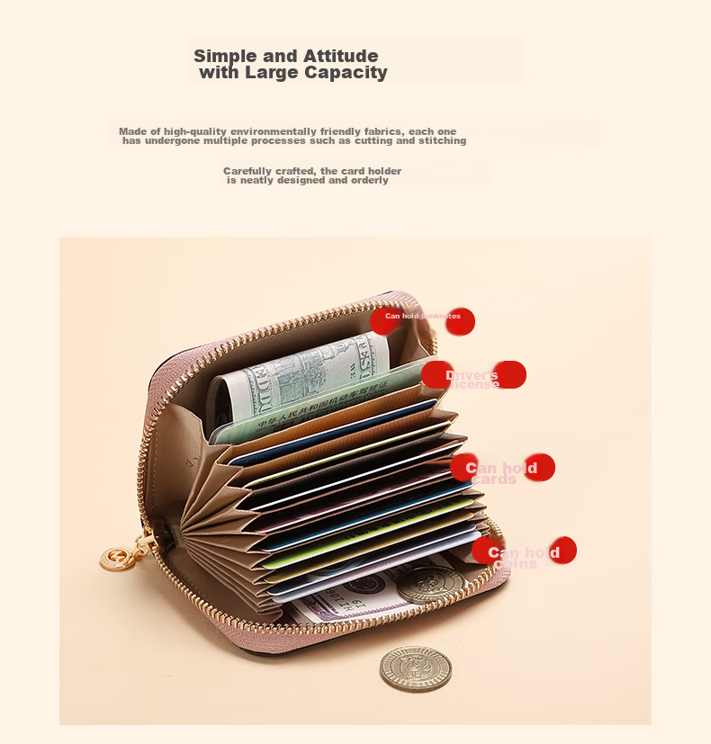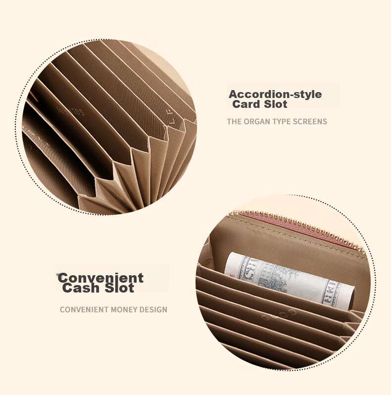 - Neat and orderly interior design for storing cash, driver's license, cards, and coins