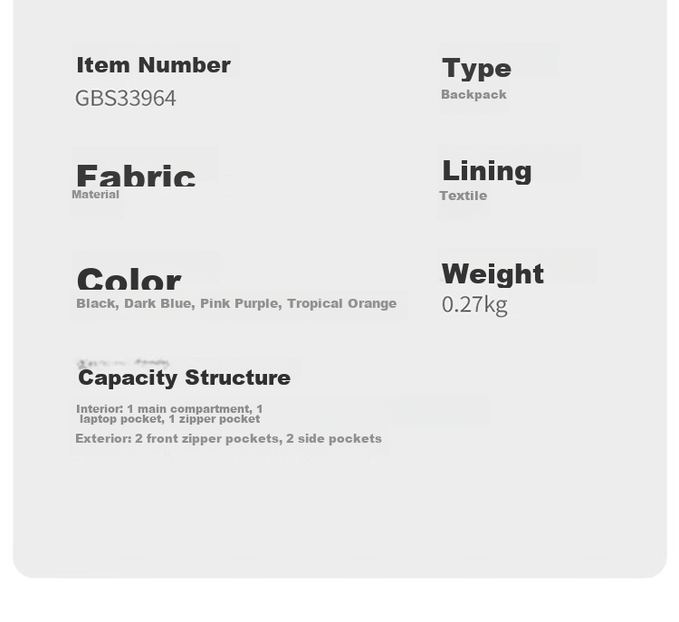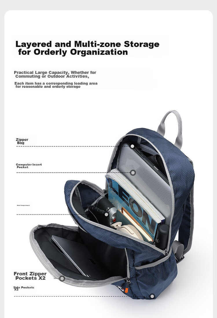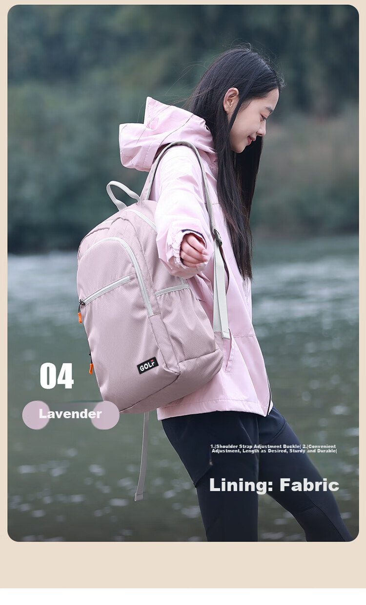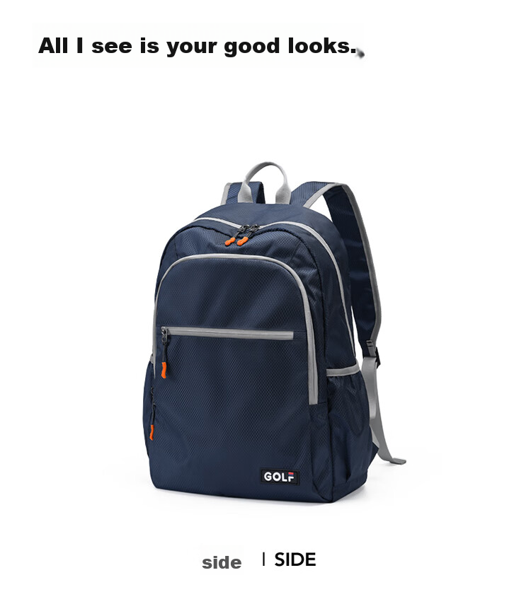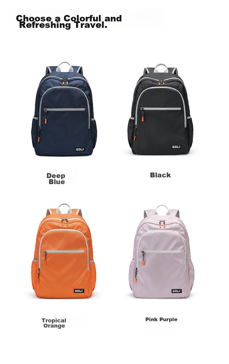 Capacity: Internal: 1 main compartment, 1 laptop pocket, 1 zippered pocket, External: 2 front zippered pockets, 2 side pockets. Choose a refreshing color for your journey, GOLP, GOLF, deep blue, black, GOLP, GOL, tropical orange, pink purple. When tired of city life, head outdoors and take a leisurely trip with a lightweight backpack. Multiple angle still life display, GOLP, GOLF. Everything you see is your aesthetic, GOLF, side view, ISIDE. Front side ISIDE, back side BACK. GOLF, GOLP, front side IFRONT, side view SIDE. GOLF, GOLF, front side IFRONT, side view SIDE. GOLF, GOLF, front side IFRONT, side view ISIDE. More small details.