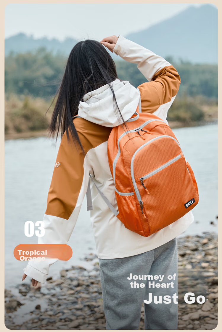 Description: GOLF, AESTHETICSOFMOUNTAIN LIFE. Instantly fall in love and travel freely with GOLF's versatile carrying options including hand-held, single shoulder, and double shoulder. GOLF offers a variety of fashionable colors to meet your diverse needs. 01, deep blue, high aesthetic value. 02, black, explore new journeys and travel freely. 03, tropical orange, follow your heart and go wherever you desire. 04, pink purple, modern rhythm, a dance of elegance.