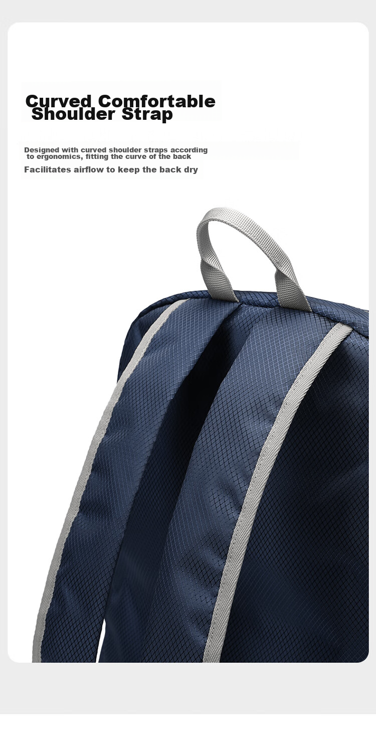 Ergonomically designed curved shoulder straps for a comfortable fit and airflow, keeping the back dry.