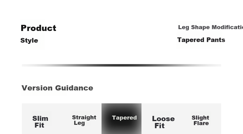 Leg Shape: Slim Fit, Straight Leg, Tapered, Loose Fit, Slight Flare