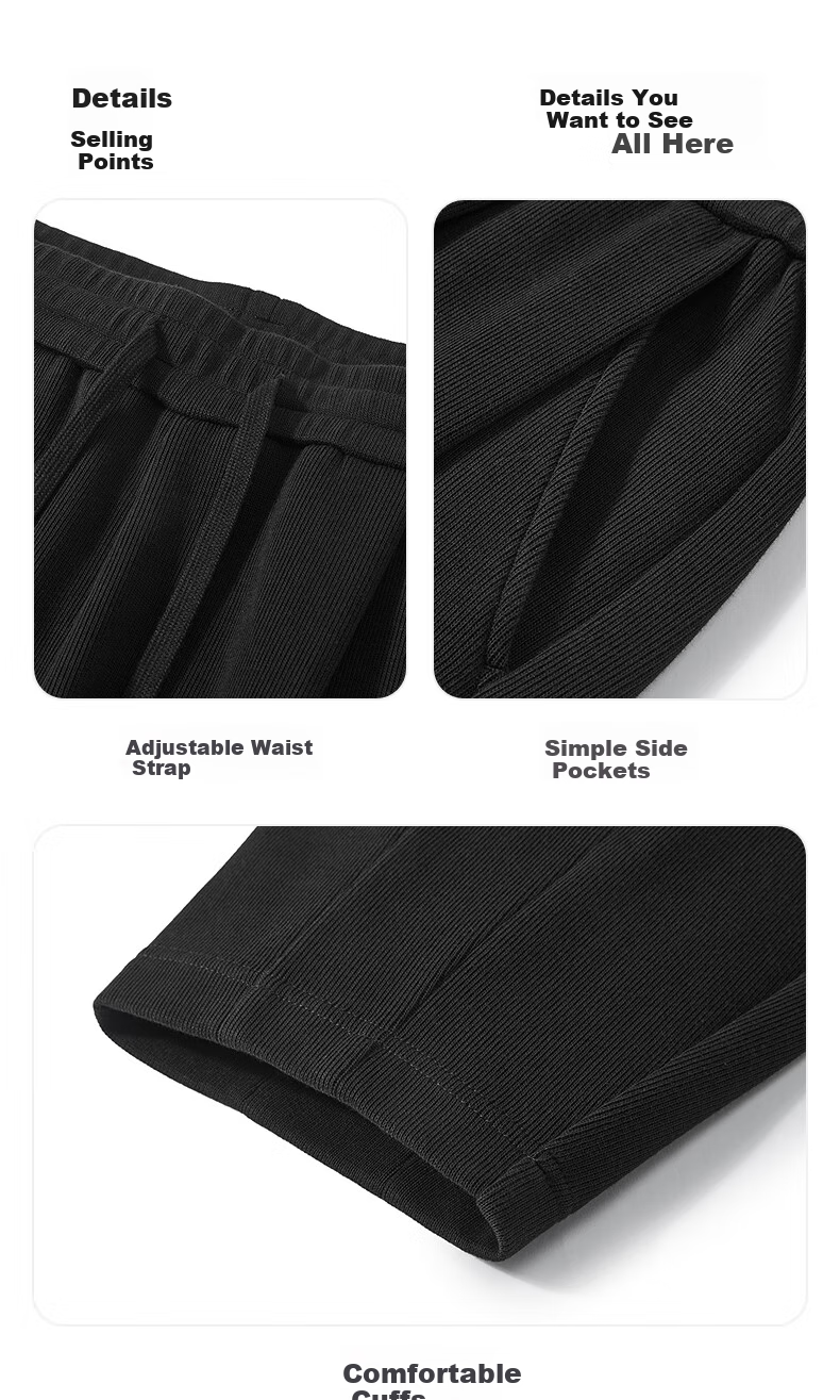 Details: Elastic Waistband with Drawstring, Simple Side Pockets, Comfortable Cuffs