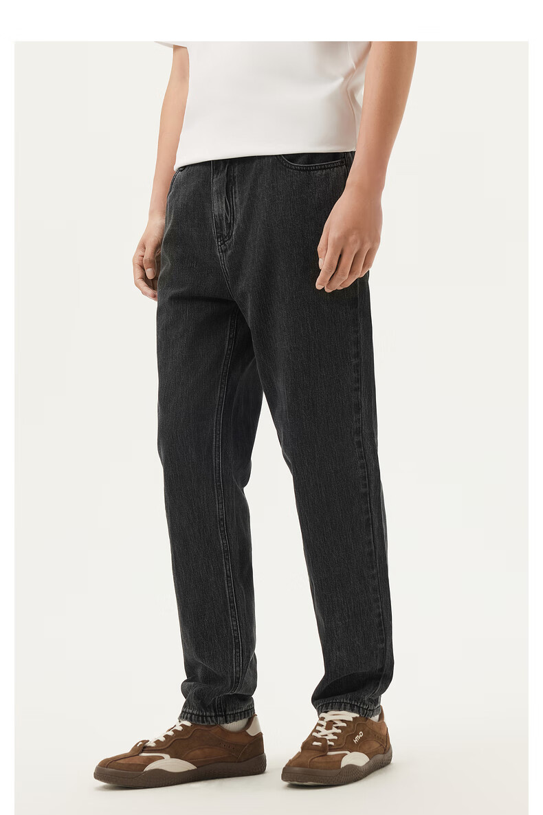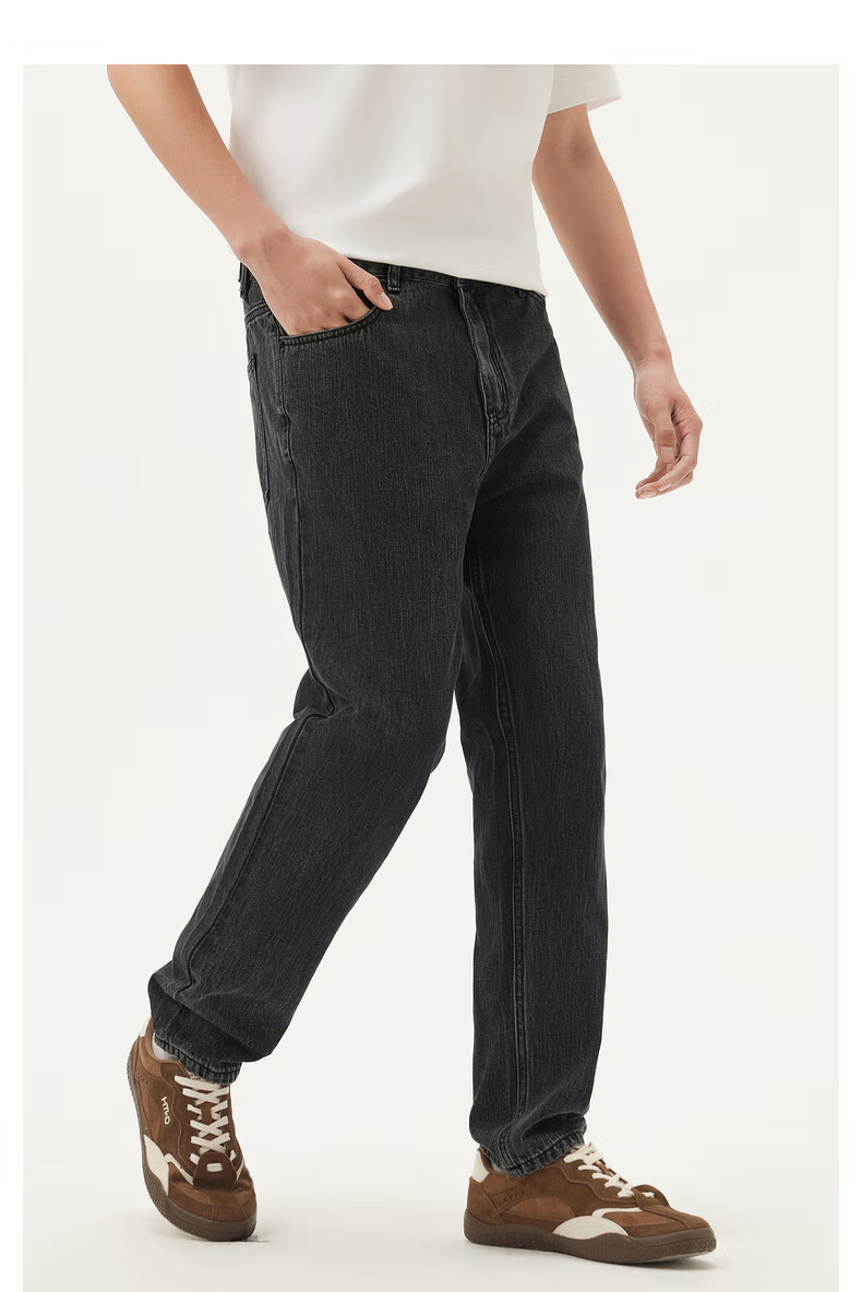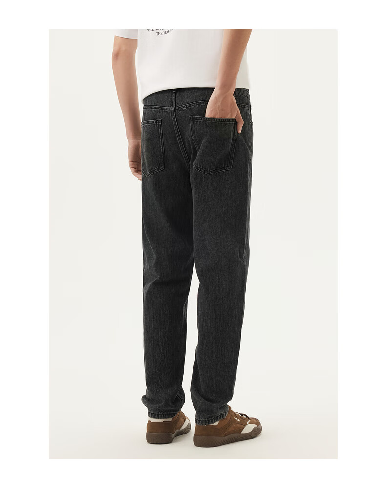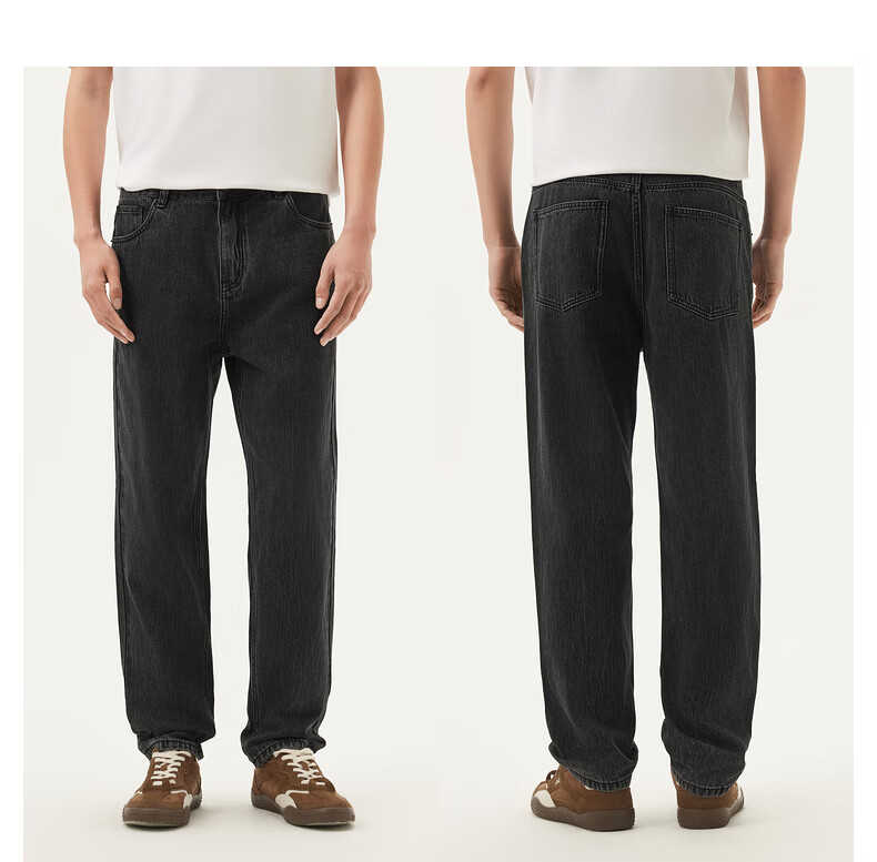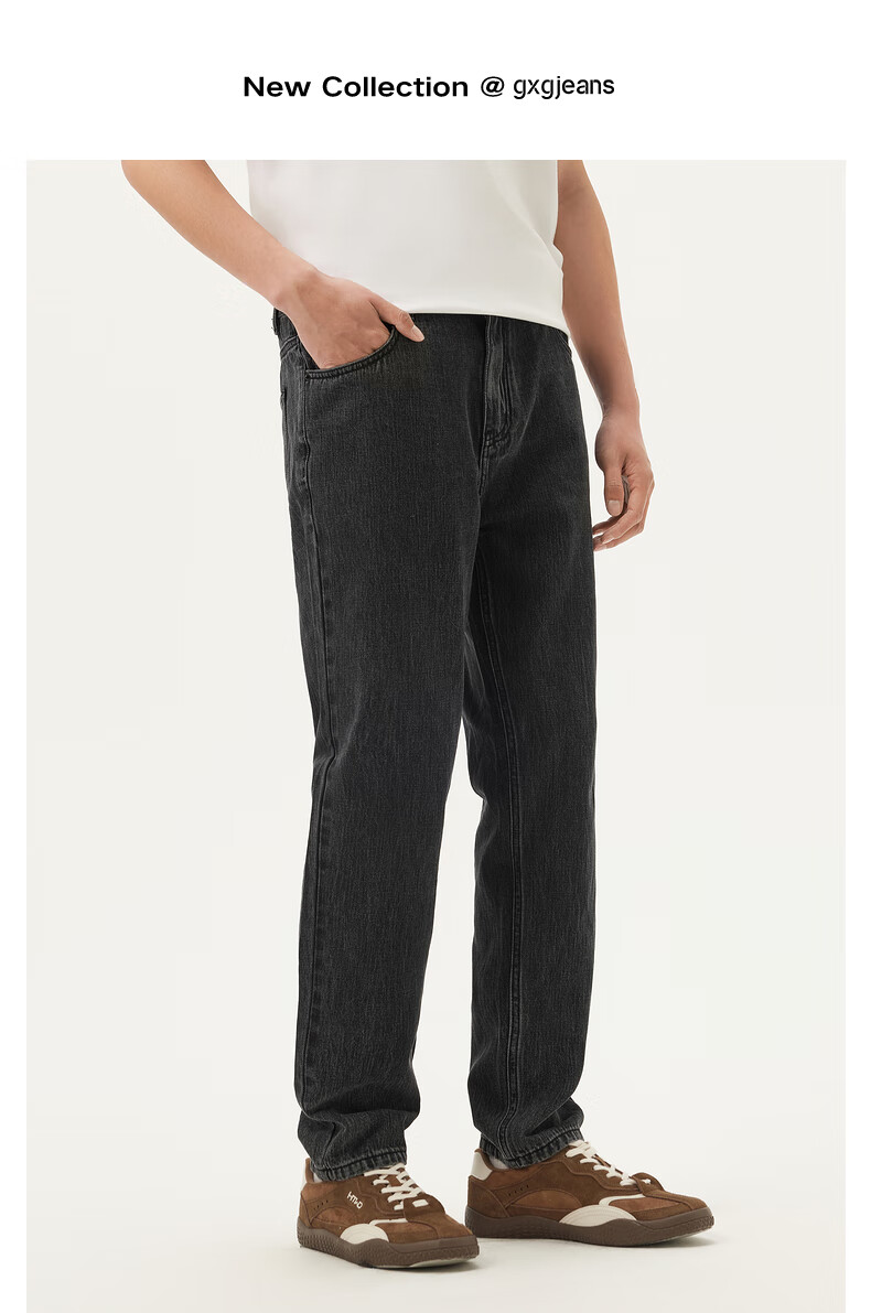 - **Hangtag Information:** Certificate of Conformity: 193266818295, Brand: gxg.jeans, Product Name: Casual Jeans, Grade: Qualified Product, Style Number: J25D051001, Inspector: Check 0056, Color: Black Gray, Safety Technical Category: GB18401B, Compliance Standard: FZ/T81006-2017, Inspection (1) Passed