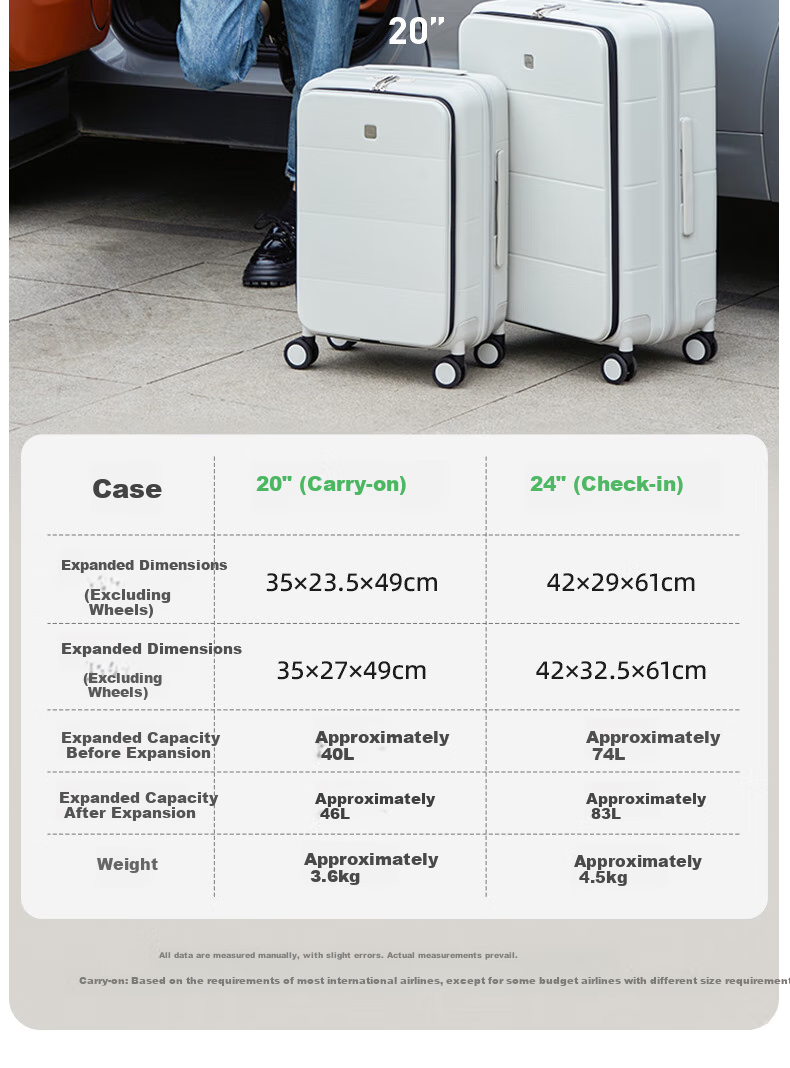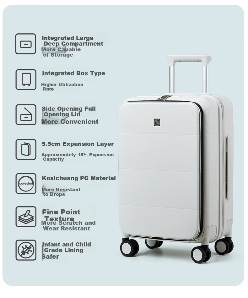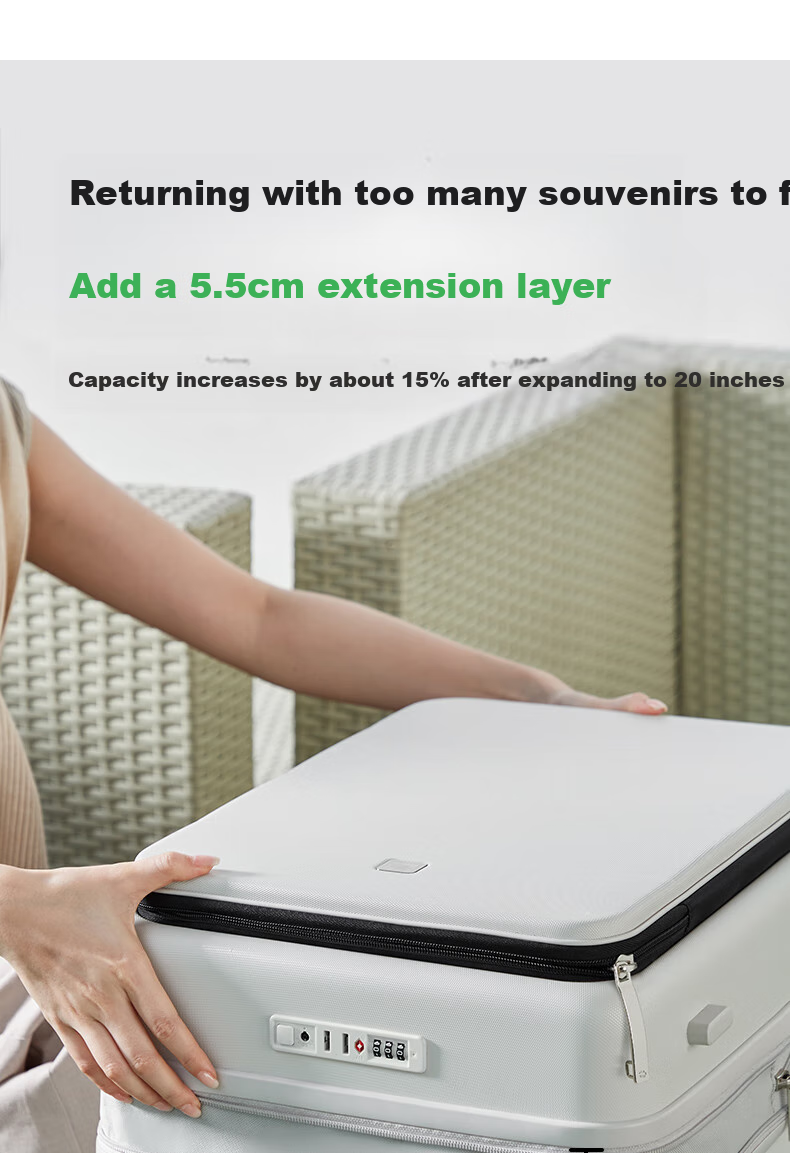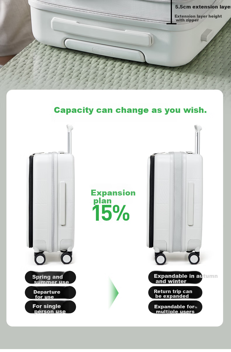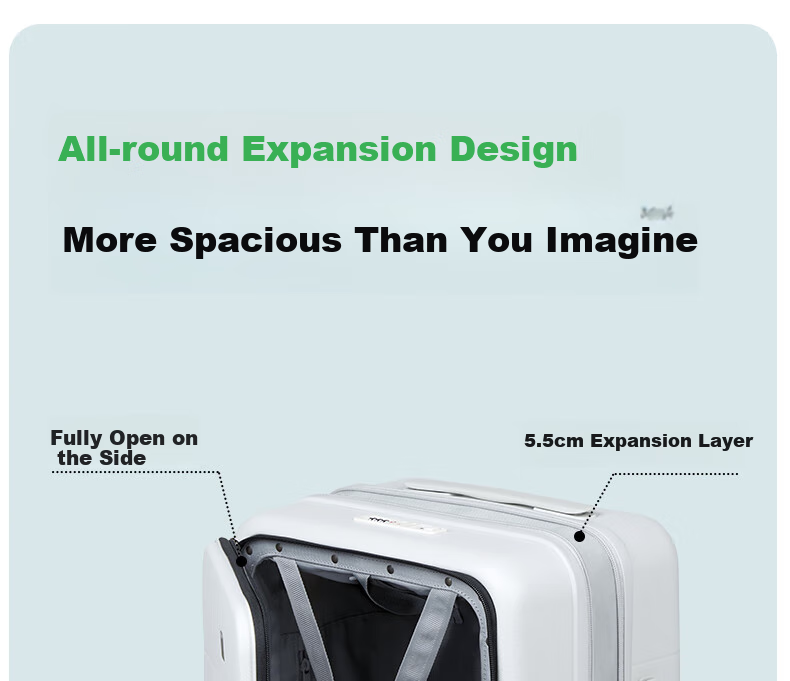 **Design:** Next-generation large capacity expandable side-opening suitcase