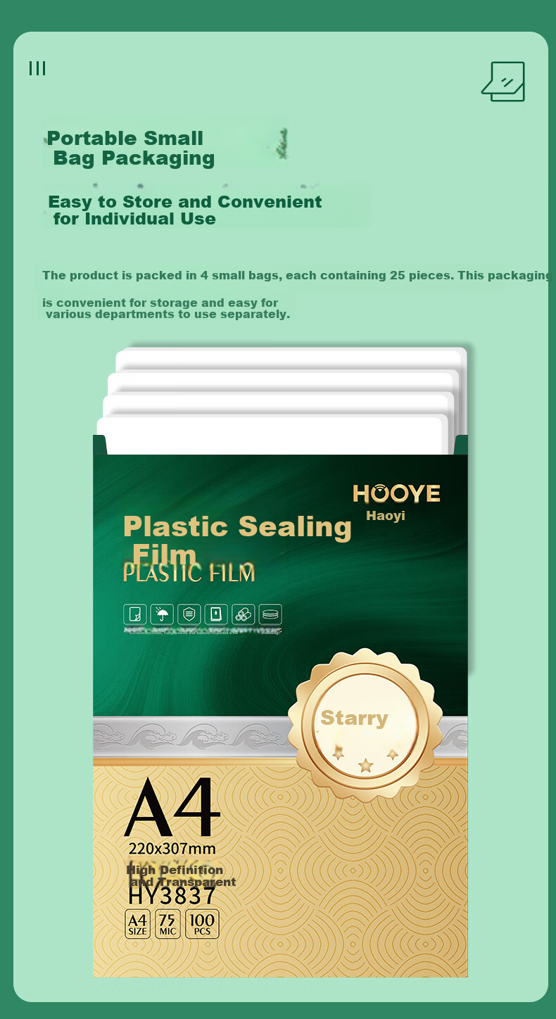 Packaging: 25 sheets per pack, 4 packs