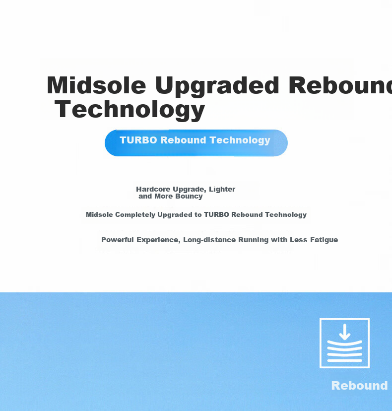 **Midsole Technology:** Features TURBO rebound technology for increased responsiveness and durability, providing a lightweight and bouncy feel.