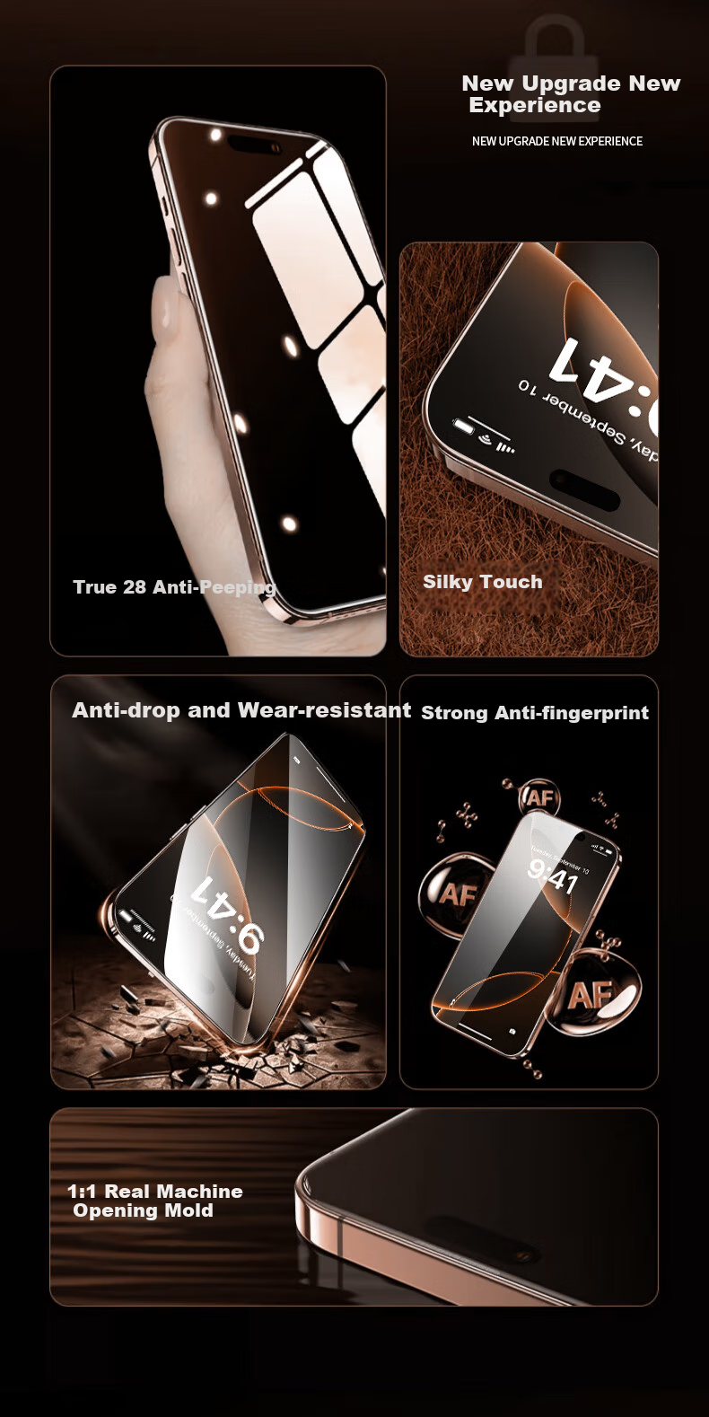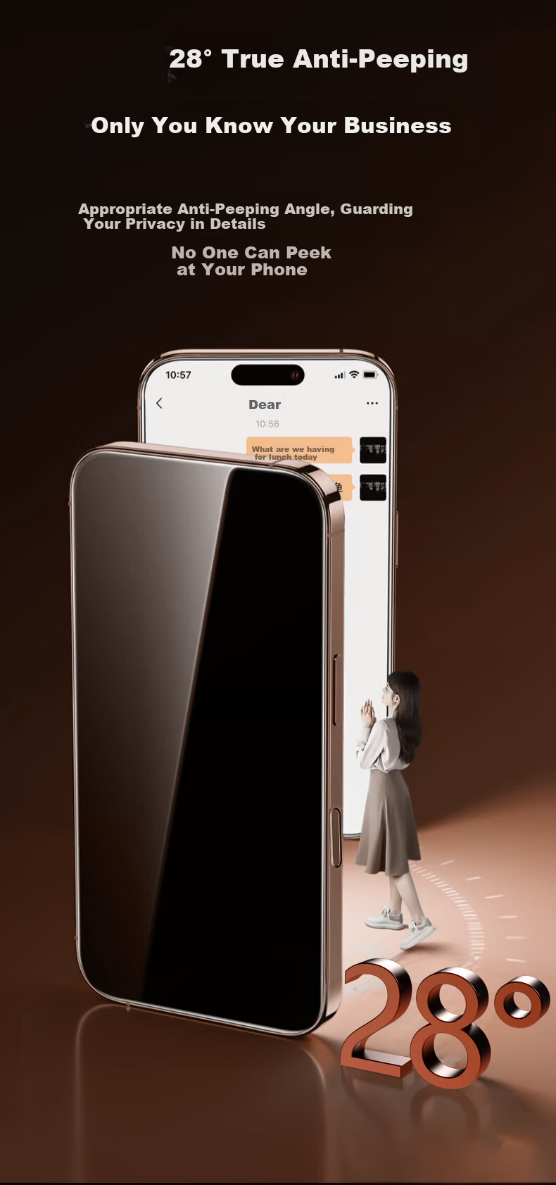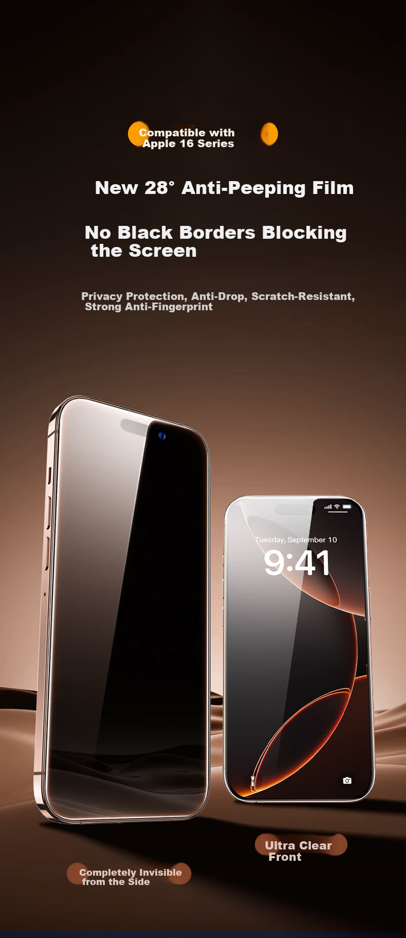 Privacy Protection: New 28° anti-spy film with no black borders to block the screen, providing privacy protection, anti-drop, scratch-resistant, strong anti-fingerprint features