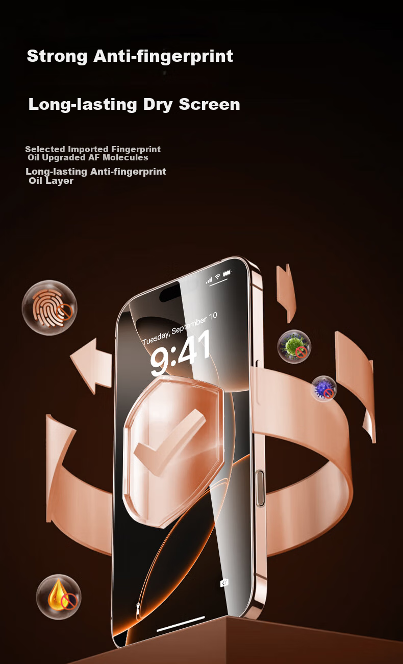 Protection: High-density scratch-resistant layer, 9H hardness, anti-fingerprint coating