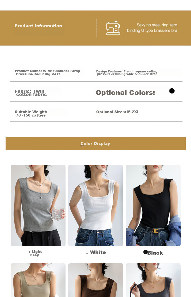- **Product Name:** Wide Shoulder Pressure-Reducing Tank Top