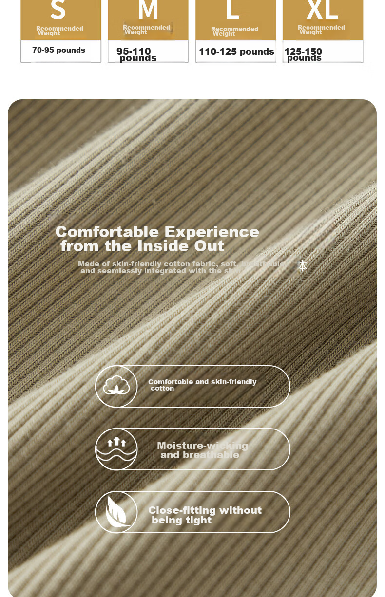 **Comfort:** Soft, high elasticity, breathable, anti-see-through, comfortable ribbed cotton