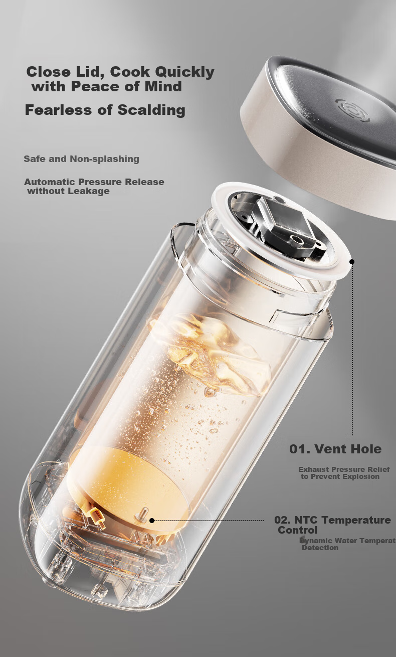 **Safety Features:** Pressure release valve, NTC temperature control, anti-scalding design