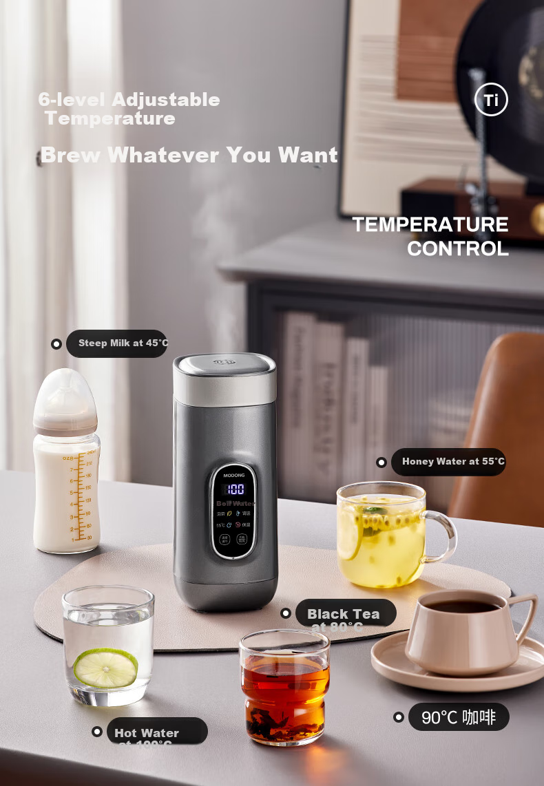 **Temperature Control:** 6 adjustable temperature settings ranging from 45°C to 100°C