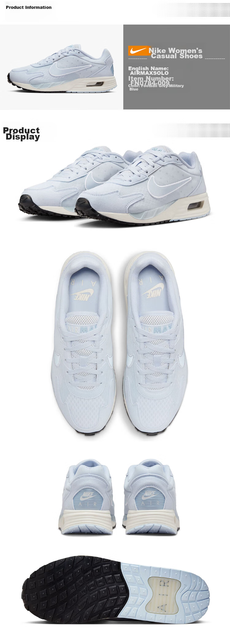 Nike Air Max Solo Women's Shock-Absorbing Casual Sneakers, FN0784-009, Gray And Blue, Size 37.5