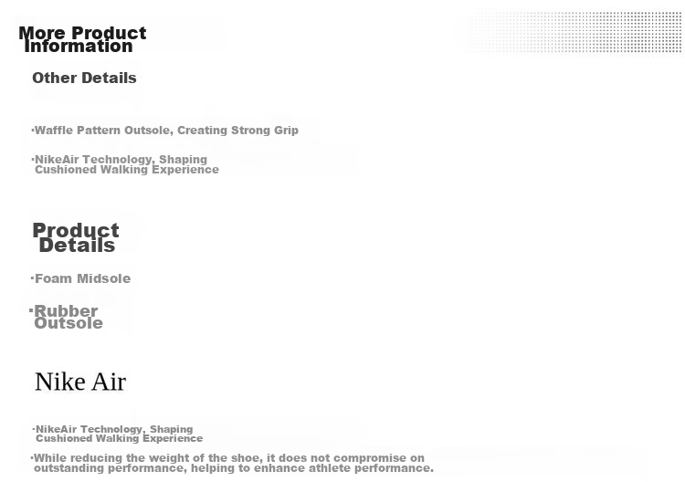 - Rubber outsole with Nike Air technology for cushioned walking experience