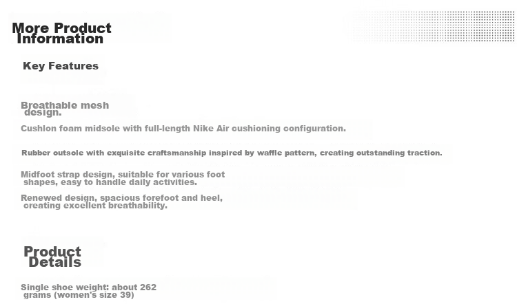 Single Shoe Weight: Approximately 262g (Women's Size 39)