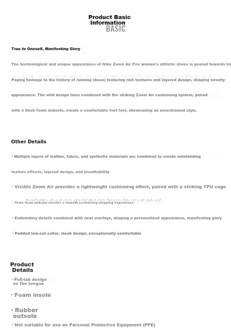 Unique appearance of Nike Zoom Air Fire women's athletic shoes combines technology with high performance, paying tribute to the history of running shoes