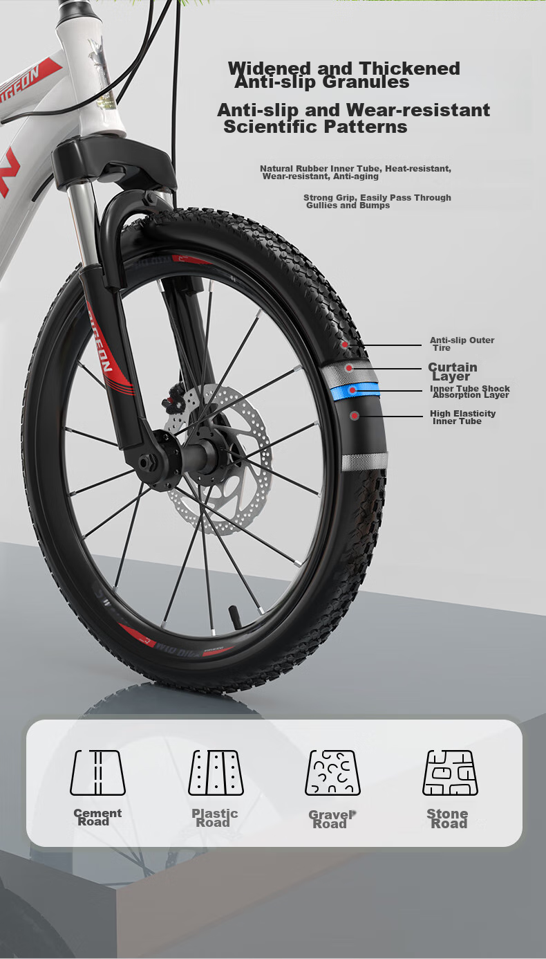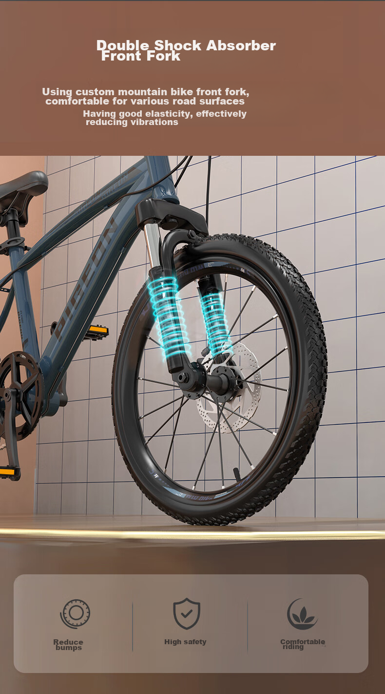 **Comfort:** Wide and shock-absorbing front fork for a smooth and comfortable ride.