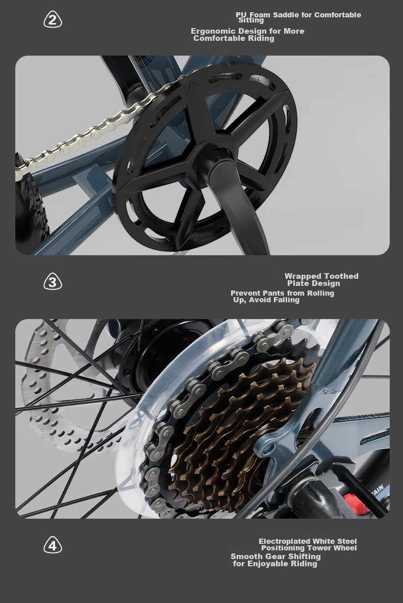 **Saddle:** Ergonomically designed PU foam saddle for comfort during long rides.