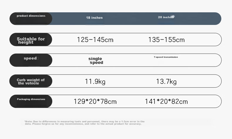 **Packaging Dimensions:** 129*20*78cm (18-inch), 141*20*82cm (20-inch).