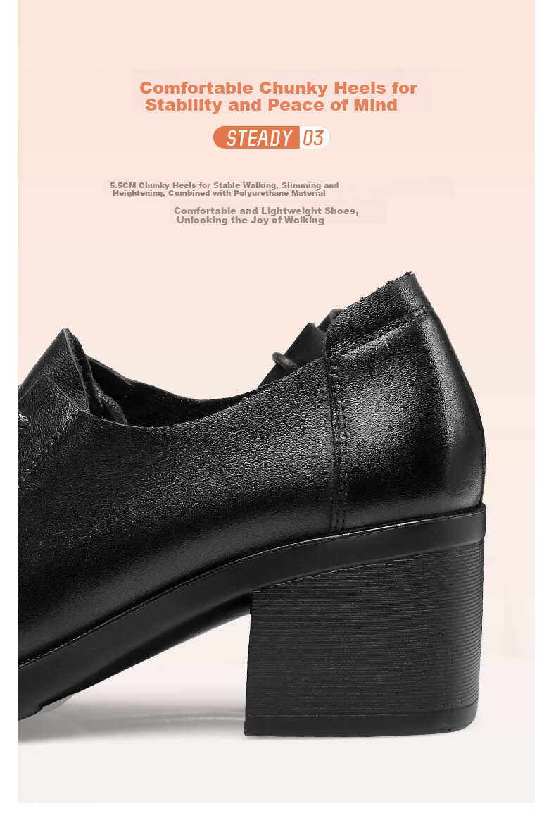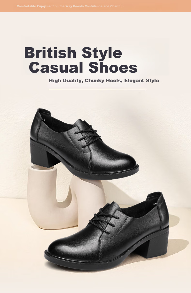 **Design:** British style casual shoes with high-quality materials, chunky heels, and elegant details