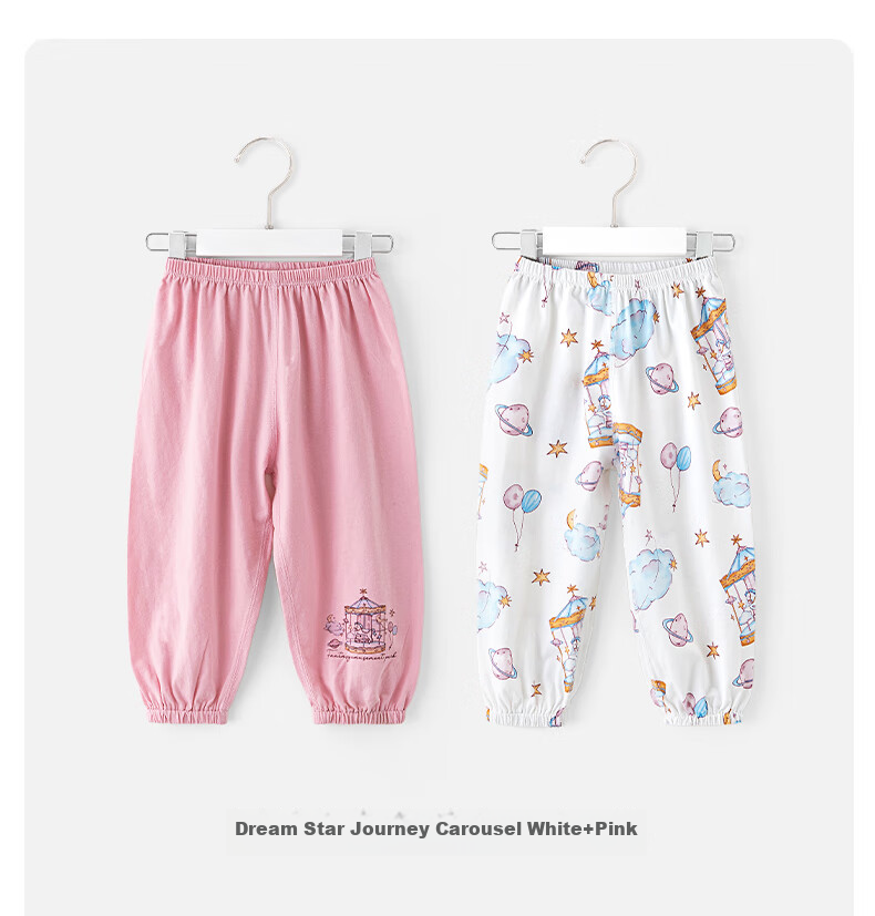 **Additional Features:** Features a whimsical carousel design. Elastic waistband and ankle cuffs for comfort. Colorfast and safe for children.