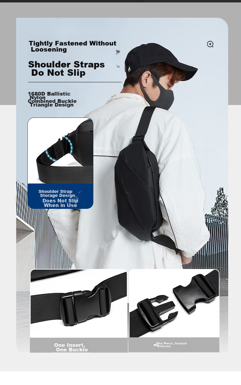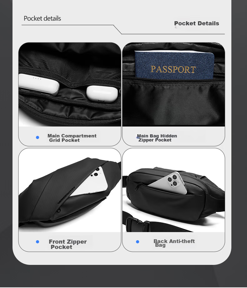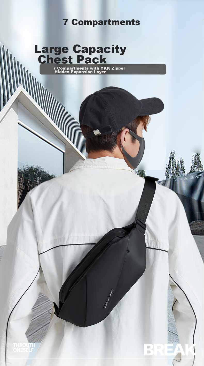 Detail Function: High-quality brand logo, durable YKK zippers, expandable hidden layer, adjustable strap storage